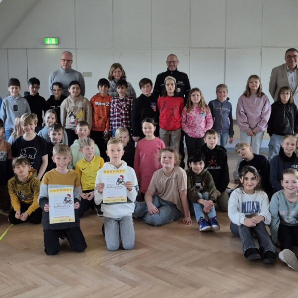 Nach intensiver Übung mit den Lehrkräften, Herrn Brandt und Herrn Koch von der Polizei konnten viele Kinder durch die Unterstützung zahlreicher Eltern ihre Radfahrprüfung ablegen. Da sehr viele Kinder erkrankt waren, wird es einen Nachholtermin geben.