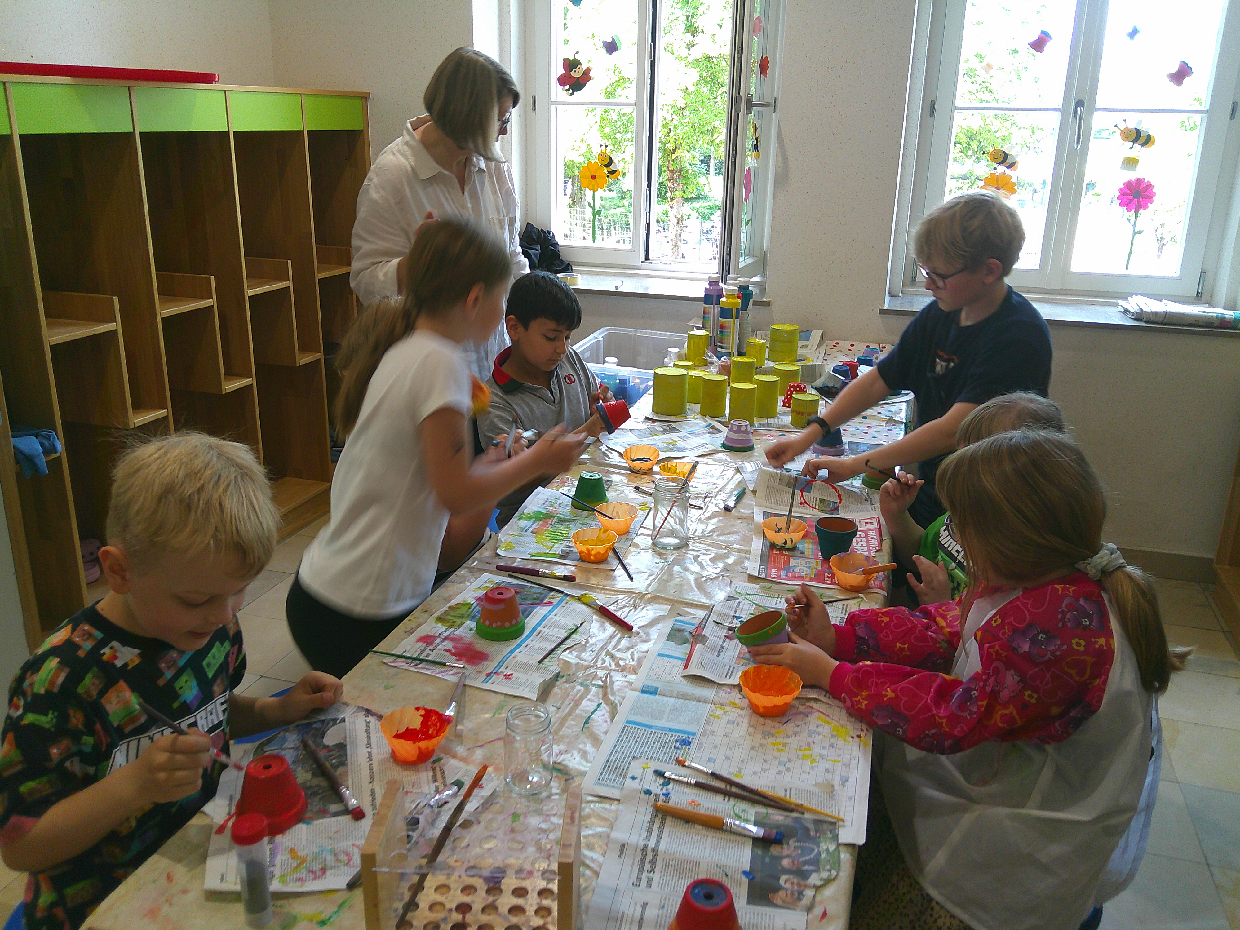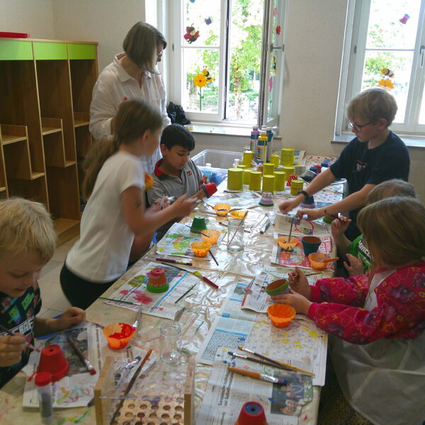 betreuung spielen Große & Kleine zusammen. Und bei schönem Wetter geht’s nach draußen.