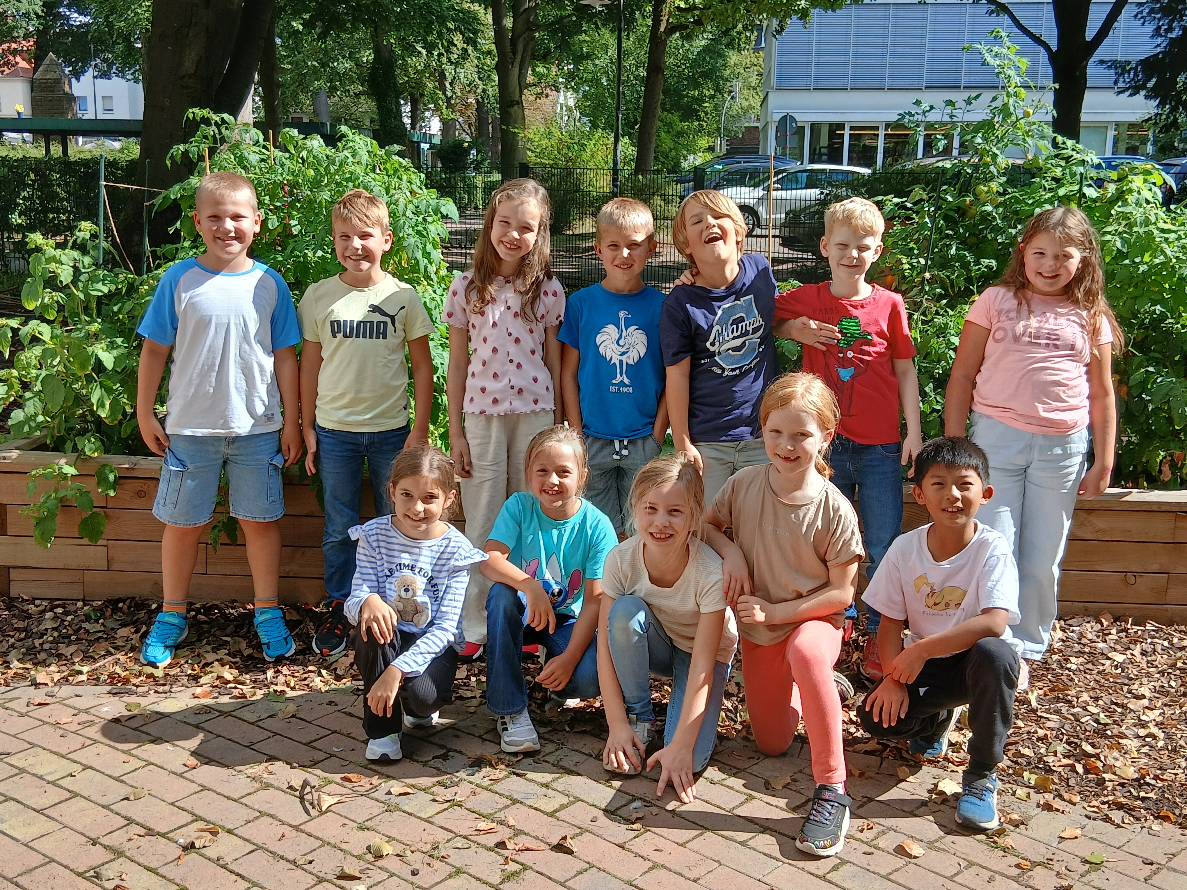 Die Schulgarten-AG hat unseren Schulgarten nach den Sommerferien fleißig vom Unkraut befreit, geerntet und wieder hübsch gemacht.