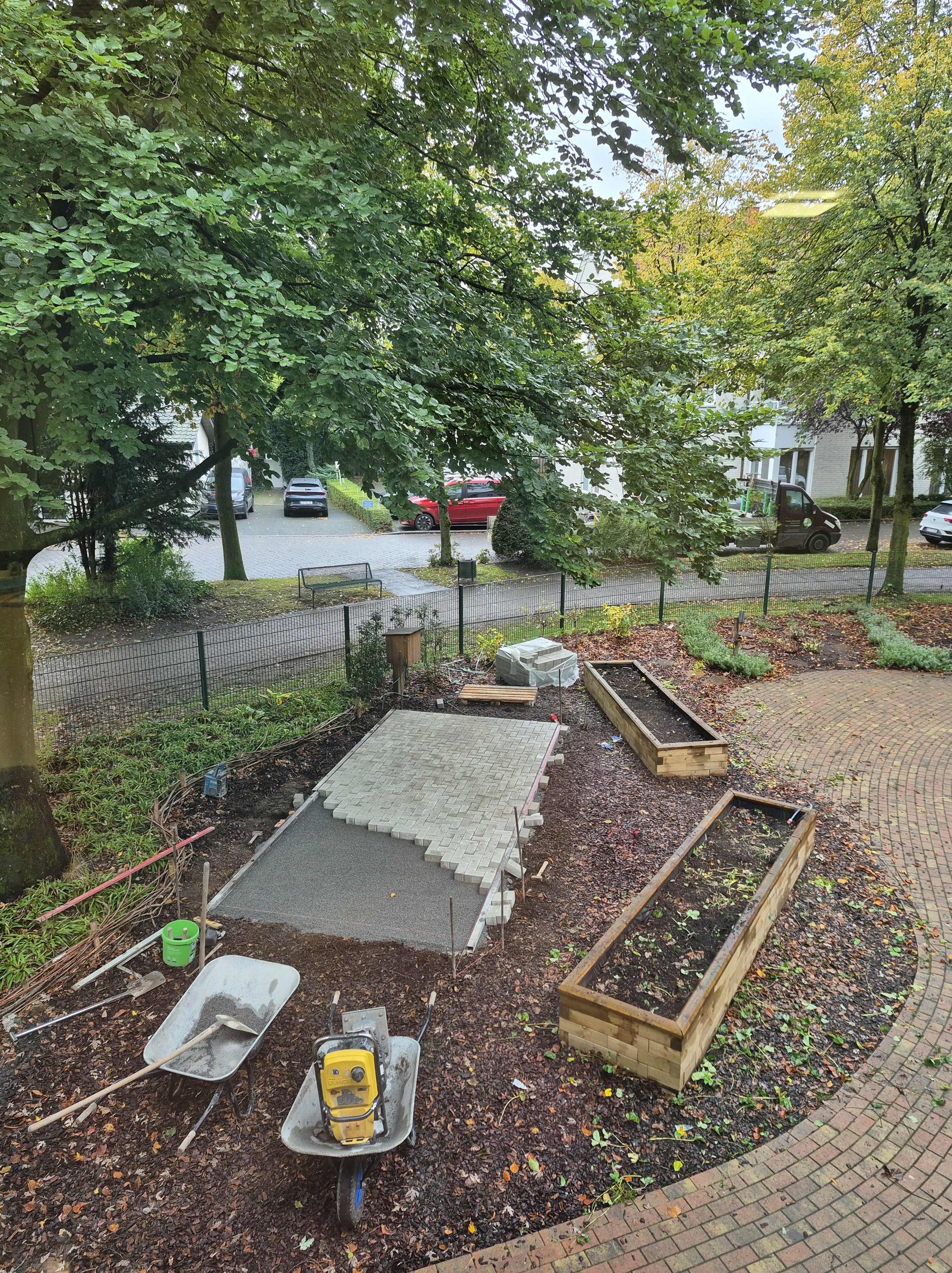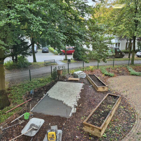 Bald bekommen wir einen tollen Bauwagen für die Gartengeräte – der Stellplatz wird schon vorbereitet…