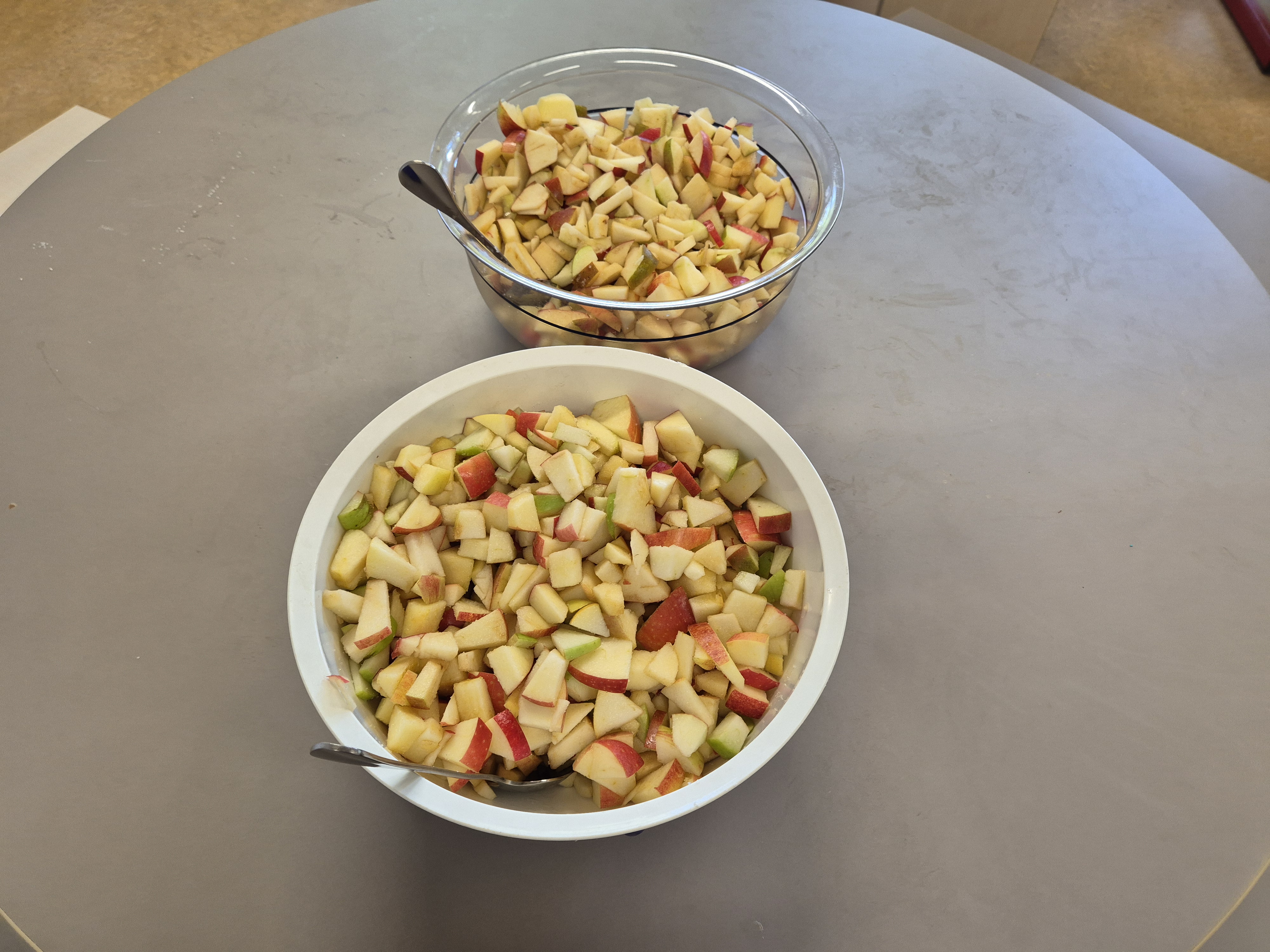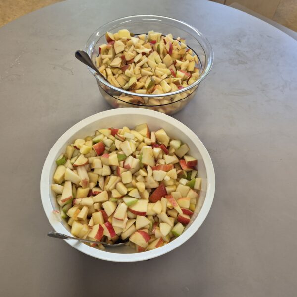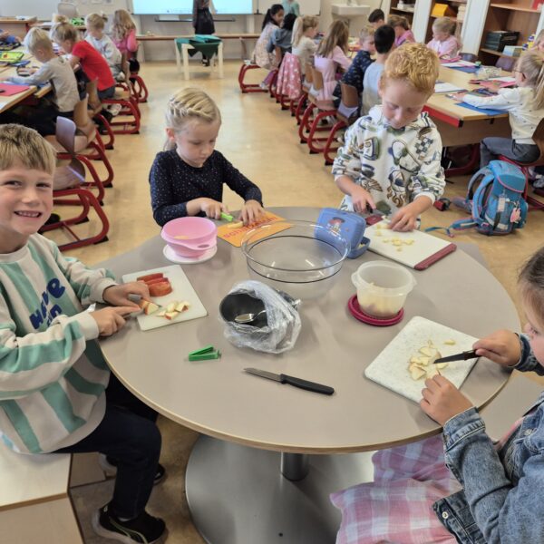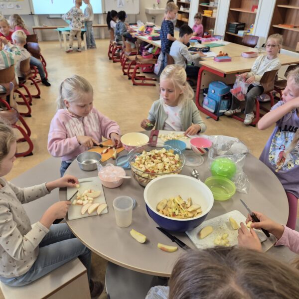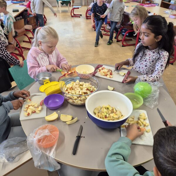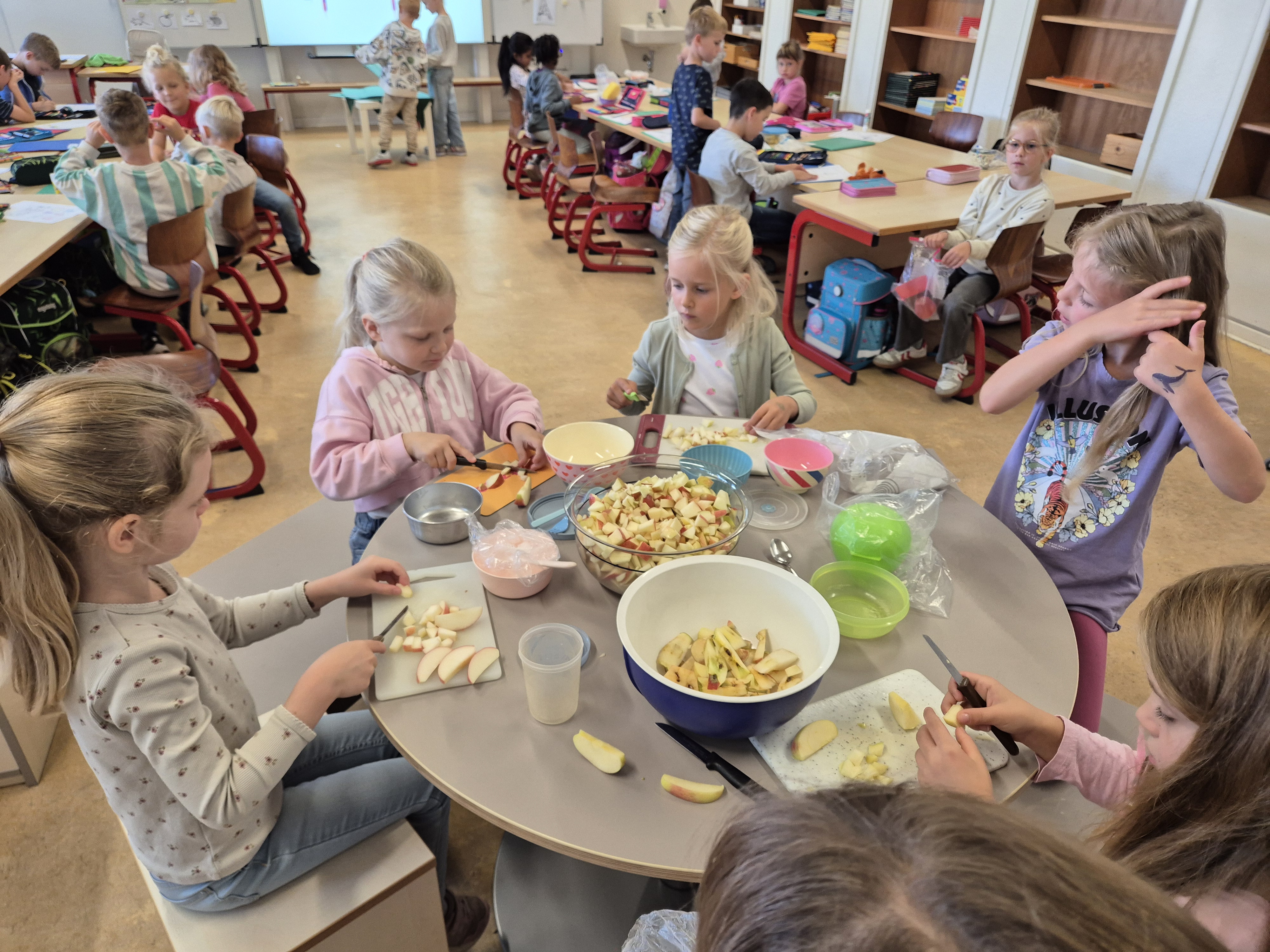 Als das A,a Geburtstag hatte, haben wir mit der ganzen Klasse einen leckeren Apfelsalat gemacht.