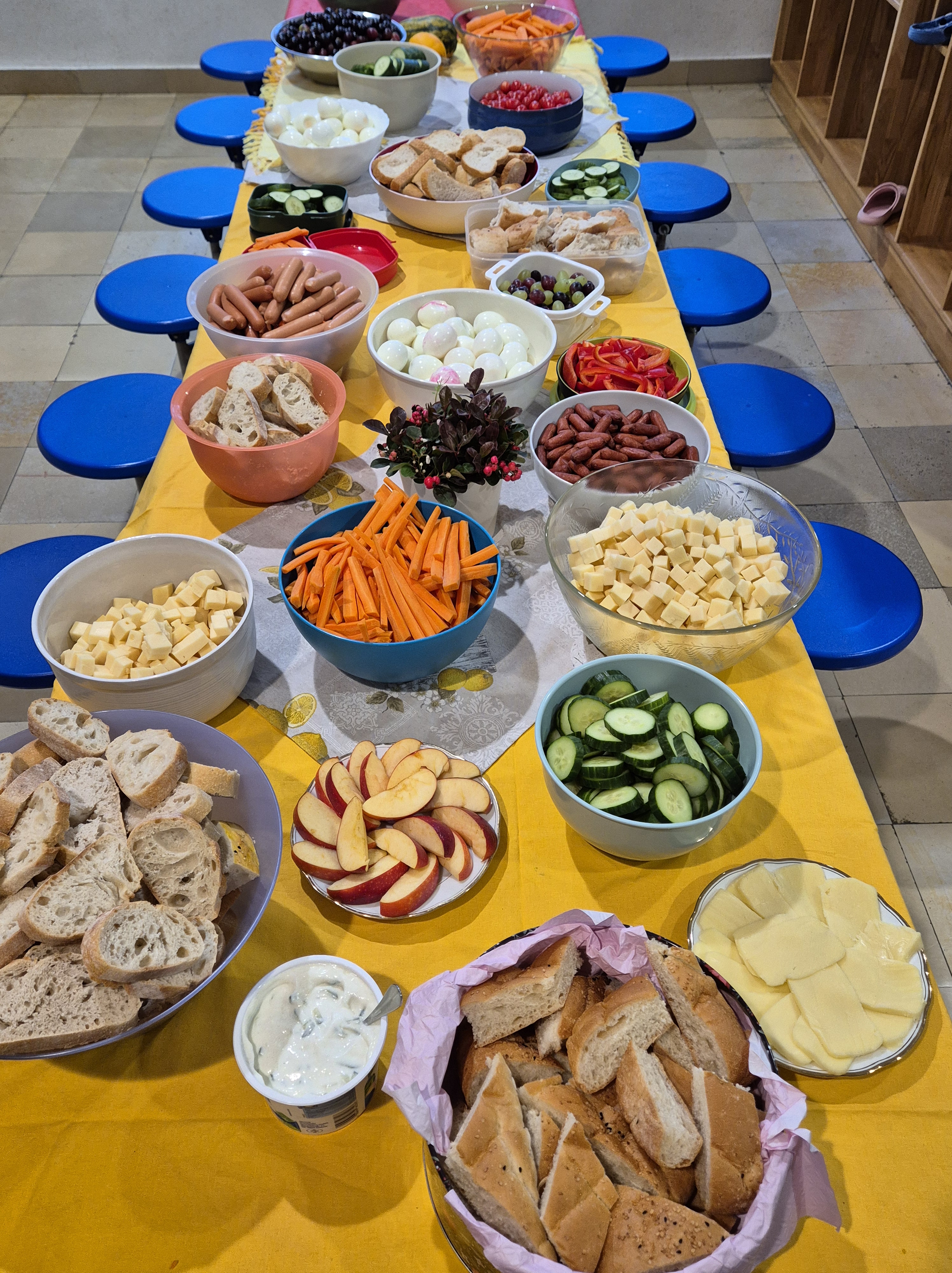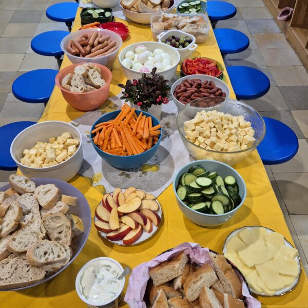 Am letzten Schultag vor den Herbstferien haben wir einen Erntedanktag mit der ganzen Marienschule gemacht. Jedes Kind hat etwas für das große Erntedankbuffet mitgebracht.