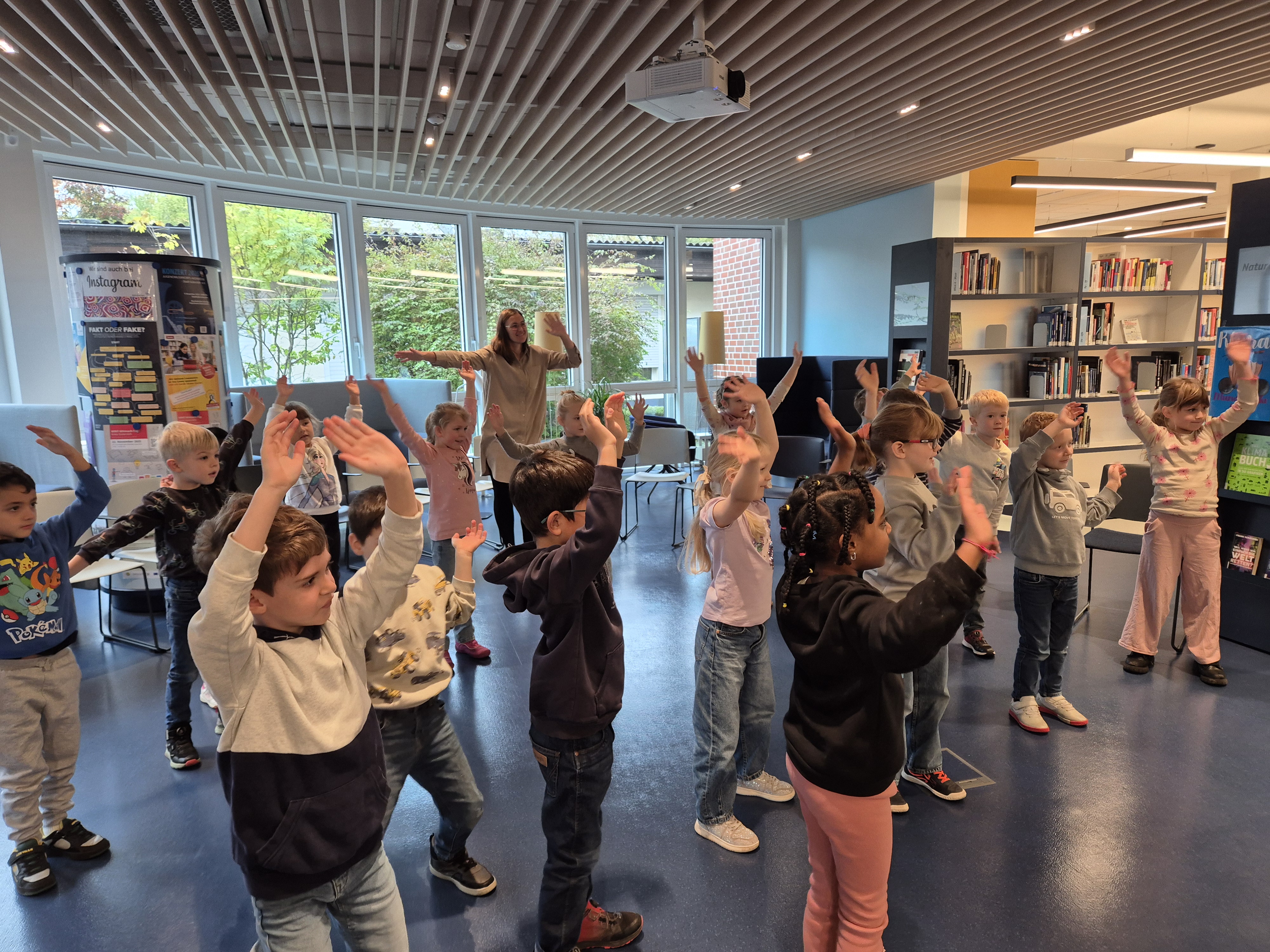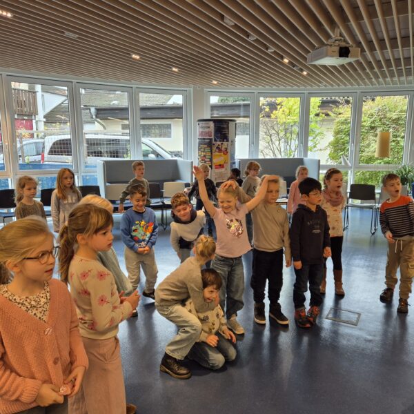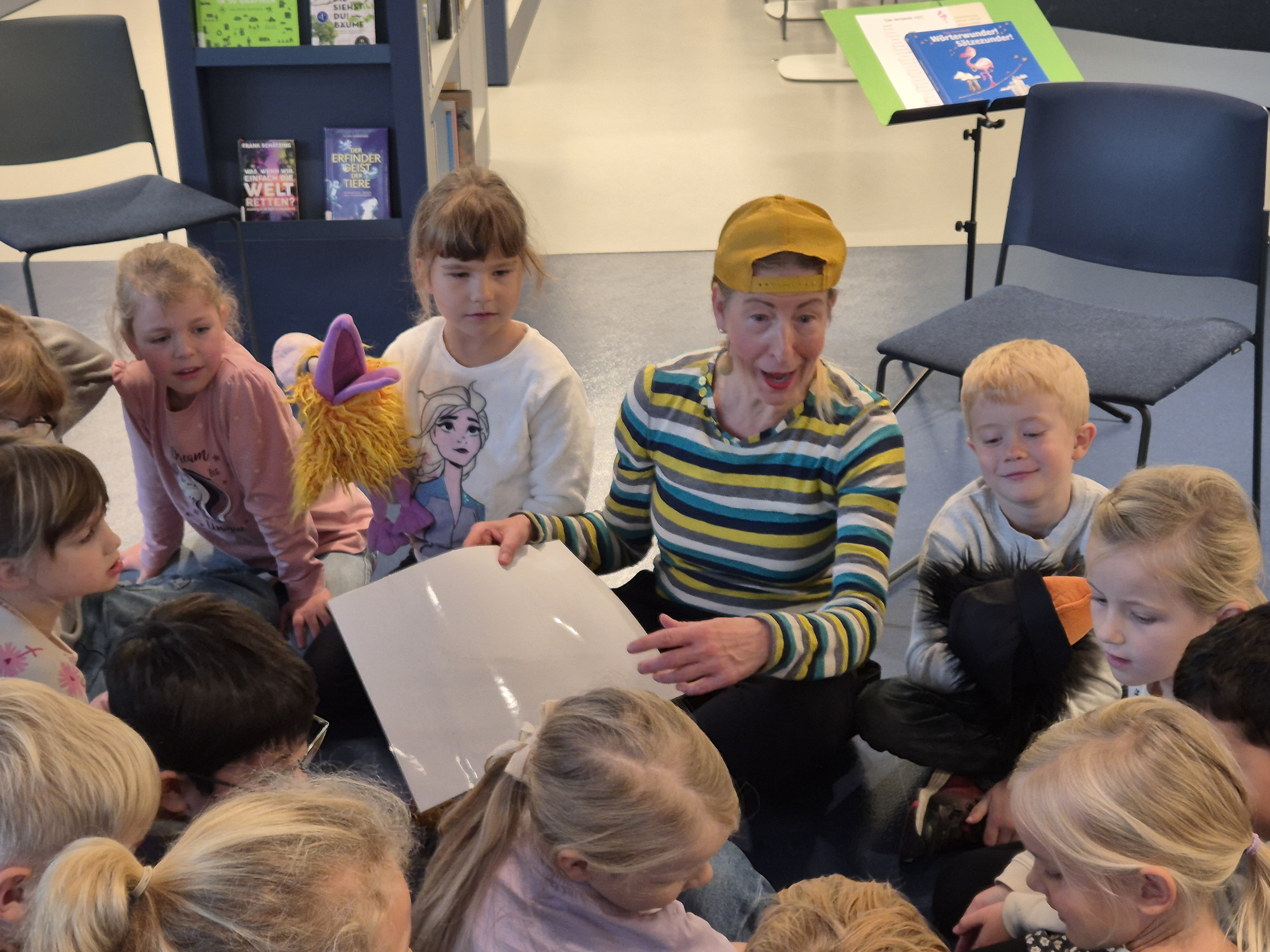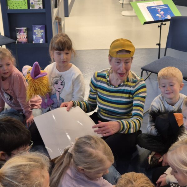 Heute sind wir in der Bibliothek zu Besuch bei „Klara Zimtschnecke“ gewesen. Gemeinsam mit uns hat sie Zungenbrecher, Reime und Gedichte gelesen.