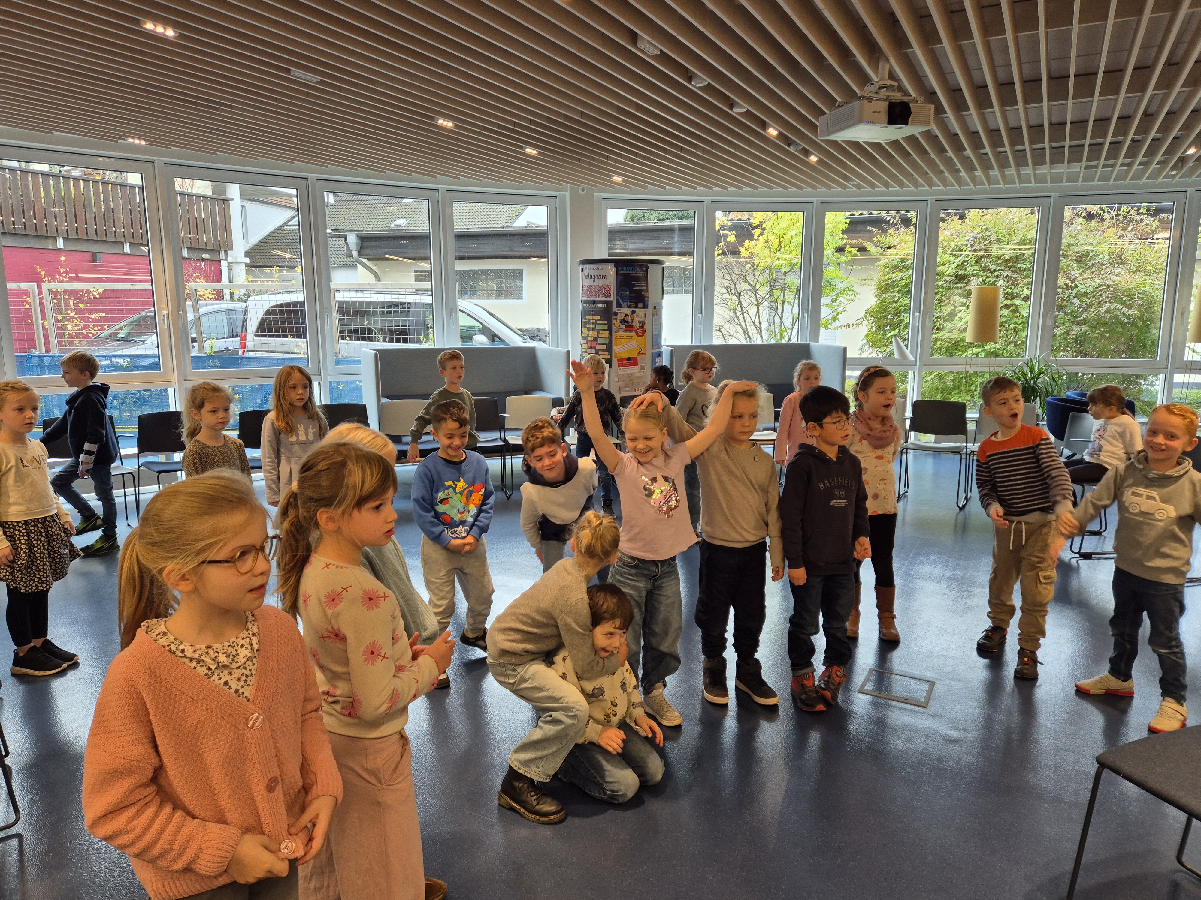 Wir haben auch zu einem Gedicht gesungen. Die lustigen Vögel Flips und Flaps sollten sich mit uns vorstellen und wir haben ihnen sehr witzige Namen gegeben.