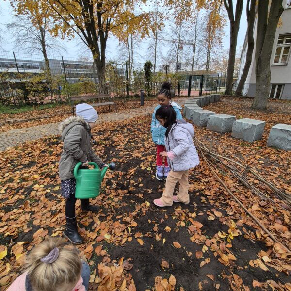 Blumenzwiebeln pflanzen im Schulgarten