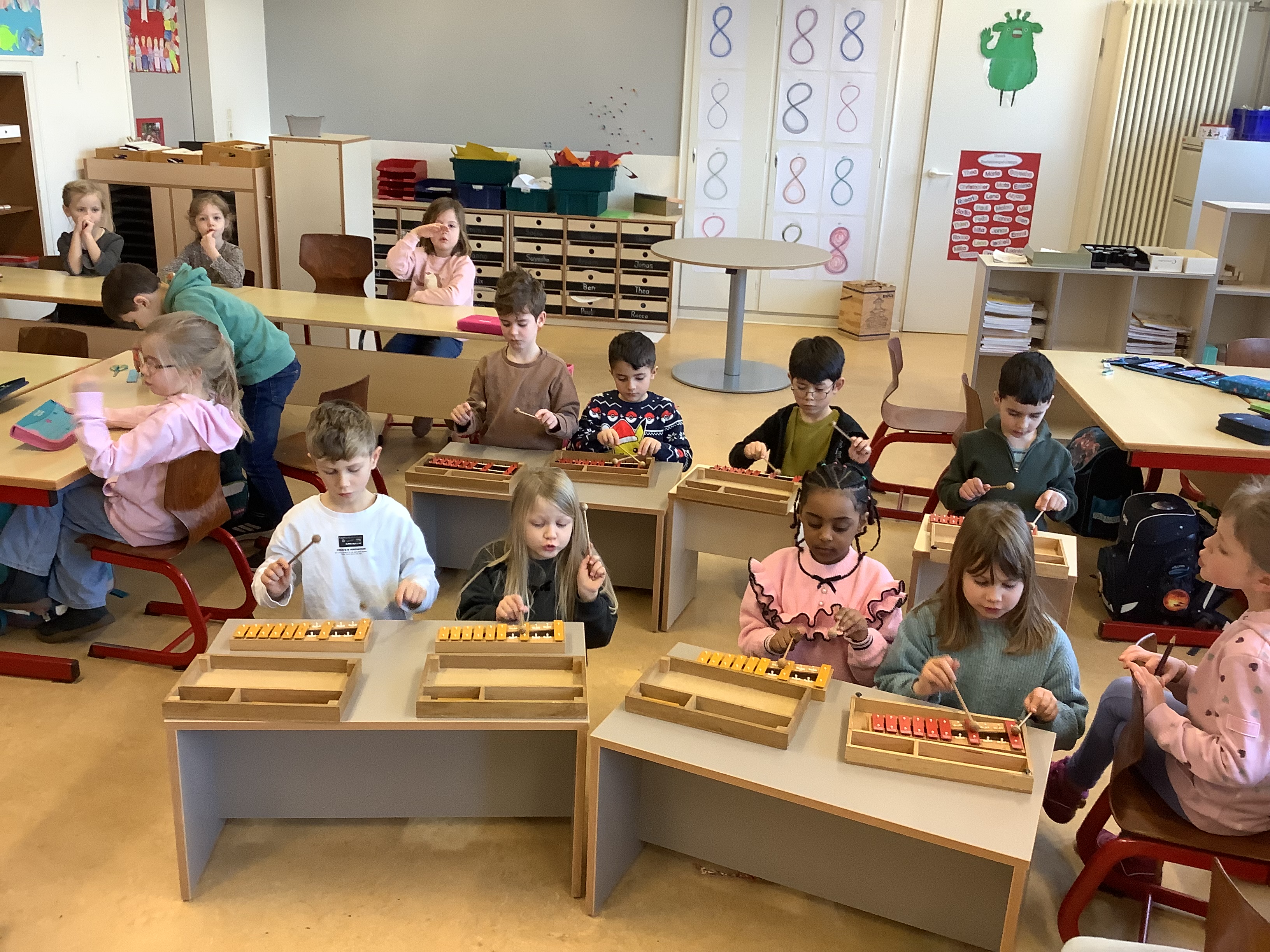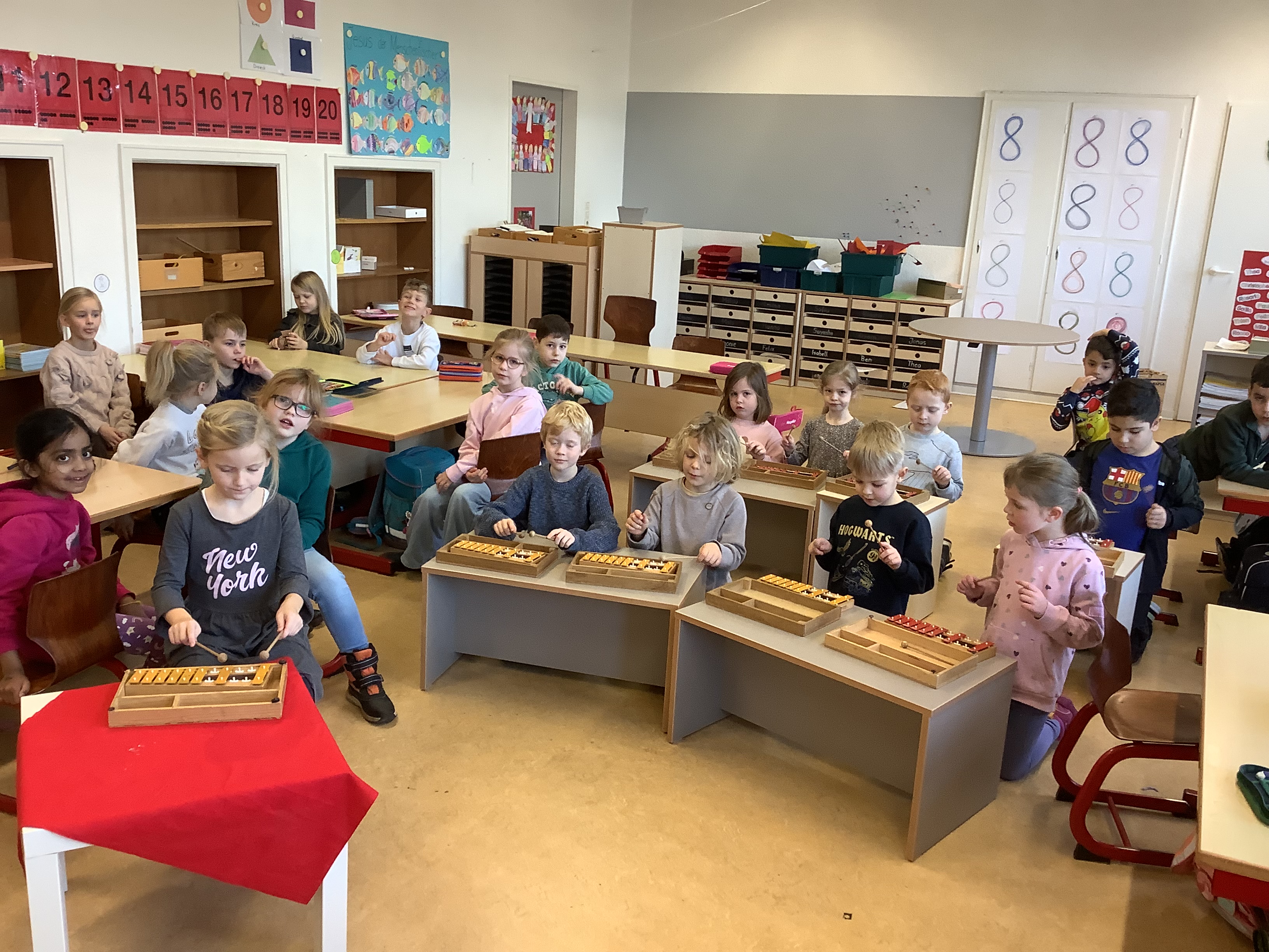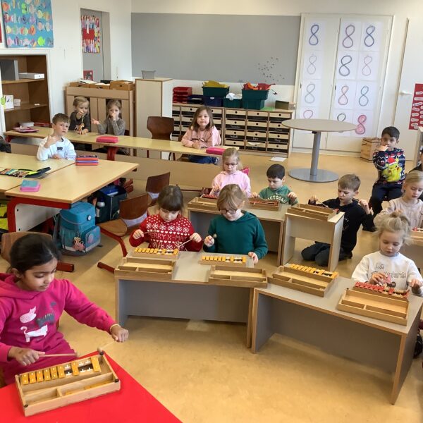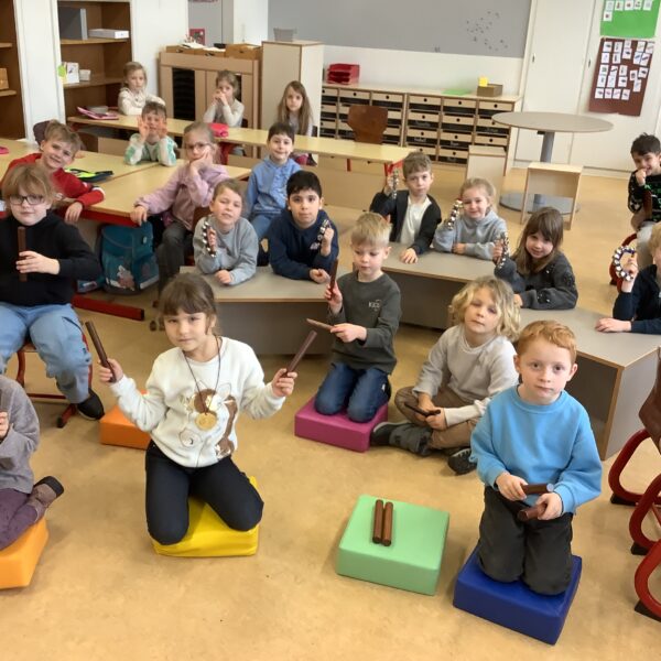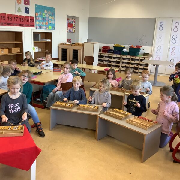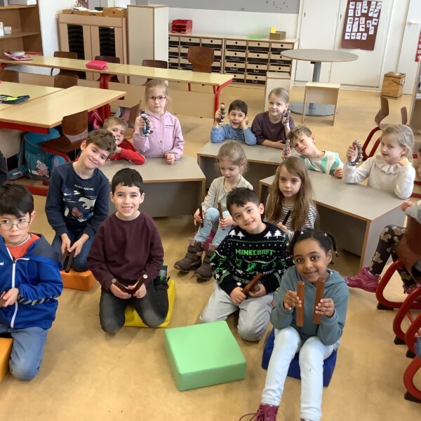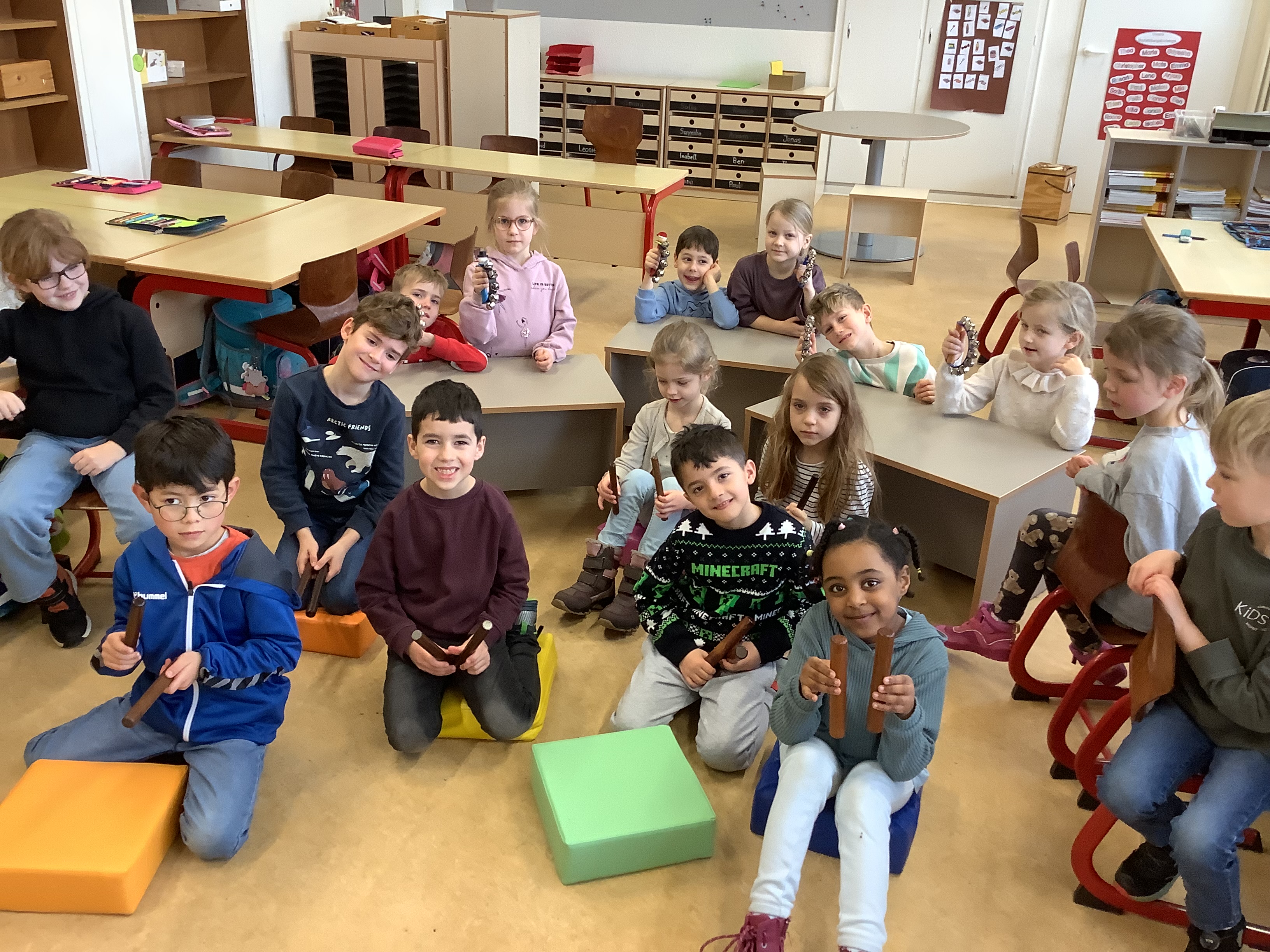 Außerdem haben wir die „Musikalische Schlittenfahrt“ von Leopold Mozart mit Rasseln und Klanghölzern begleitet.