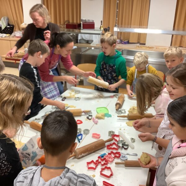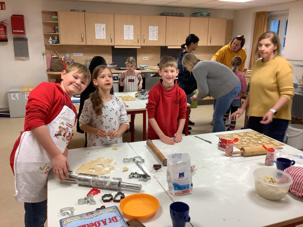 Hmmm, in der Adventszeit haben wir mit allen Eltern, die Zeit hatten, in der Küche der Marienschule gebacken. Jeder hat etwas mitgebracht: Einen Plätzchenteig, eine Kuchenrolle, eine Dose oder eine helfende Mama… und dann ging es los: Wir haben so viel gebacken, dass wir noch nach Weihnachten in der Pause Kekse essen konnten. Das war klasse und hat so viel Spaß gemacht!