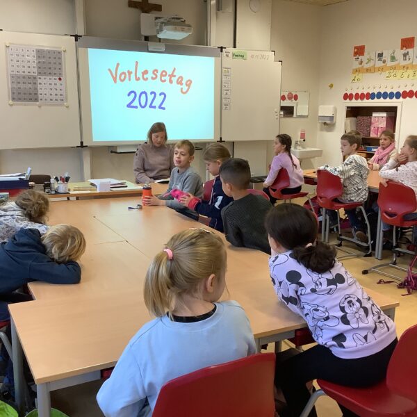 In diesem Jahr haben sich wieder für alle Klassen Eltern bereit erklärt, am bundesweiten Vorlesetag in den Klassen eine Stunde lang ein tolles Buch vorzulesen. In diesem Jahr hat die Mutter von Marc in unserer Klasse das Buch „Petronella Apfelmus“ vorgelesen. Wir haben gespannt zugehört und zwischendurch eine Tee- und Kekspause gemacht. Das ist immer so gemütlich und die Zeit vergeht viel zu schnell. Das Buch dürfen aber alle Klassen behalten. Es ist ein Geschenk vom Förderverein und wir können es in den Klassen noch zu Ende lesen. Vielen Dank für diese schöne Aktion.