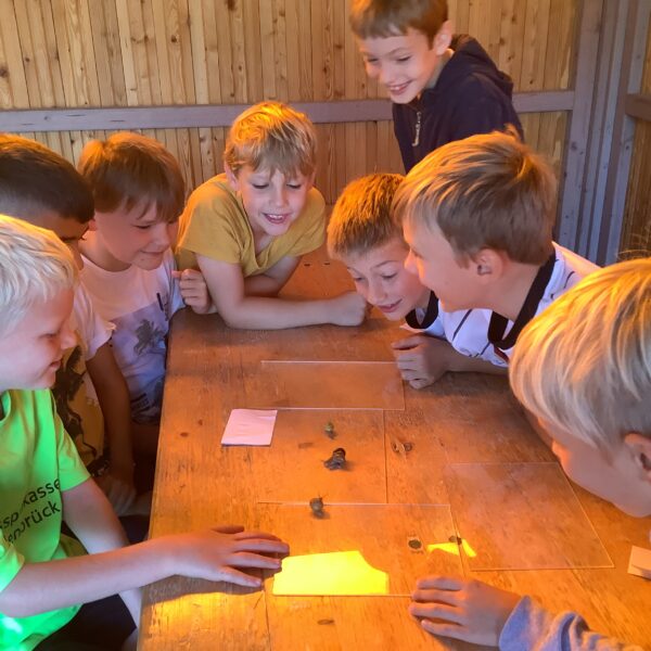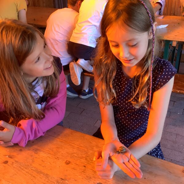 Am 22. August haben wir mit allen dritten Schuljahren einen Ausflug in die Landesgartenschau nach Rietberg gemacht. Zunächst haben wir uns mit dem Thema „Schnecken“ beschäftigt. Wir dachten, wir wissen schon viel über Schnecken, aber heute sind wir zu Schneckenforschern geworden. Es hat total viel Spaß gemacht, die Tiere zu beobachten. Wir konnten auch das Atemloch sehen und haben sie beim Fressen beobachtet. Wir haben Bänderschnecken beobachtet, und im Teich haben noch einige von uns Wasserschnecken entdeckt.