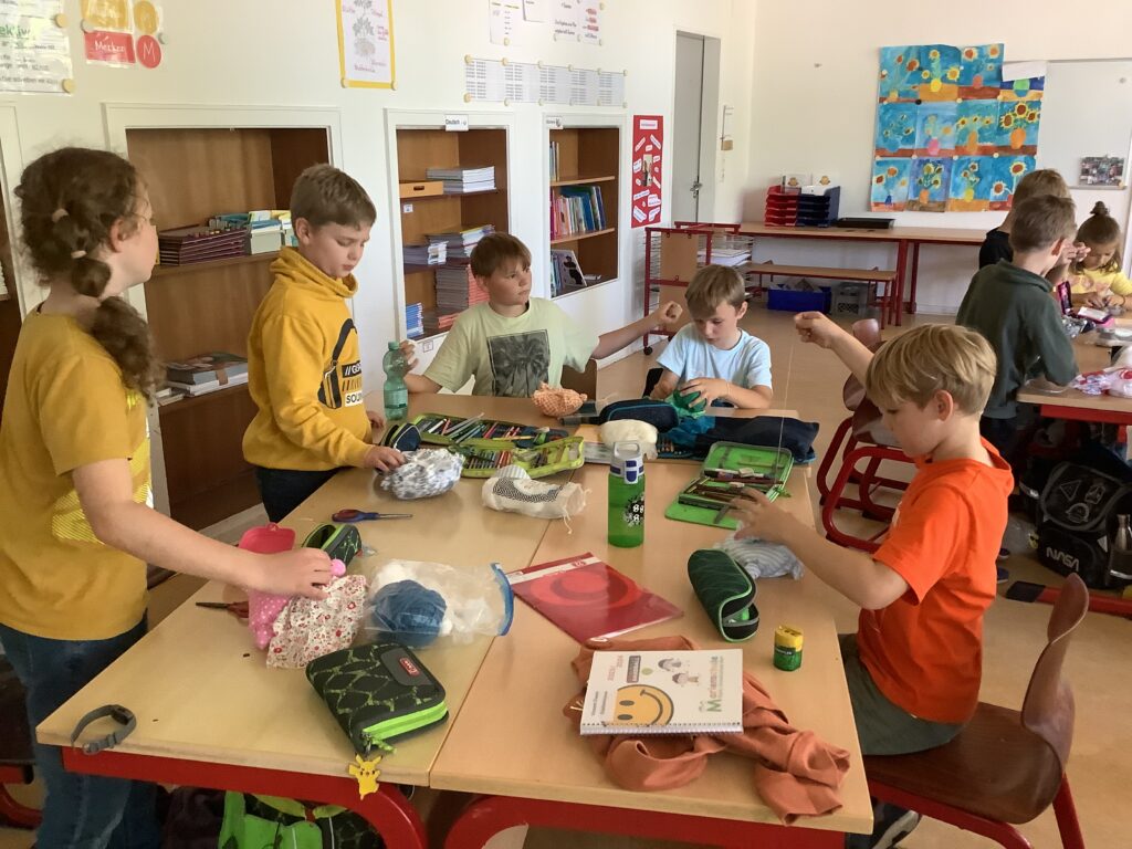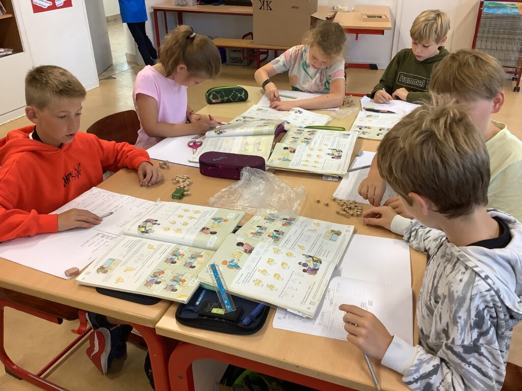 In Mathematik haben wir zum Thema „Messen“ alles mit dem Zollstock und dem Metermaß gemessen, was man sich nur denken kann. Später haben wir zunächst geschätzt und dann genau nachgemessen. Da konnten wir unsere Vorstellung über Längenangaben testen. Wir lagen oft ziemlich gut am wirklichen Maß.