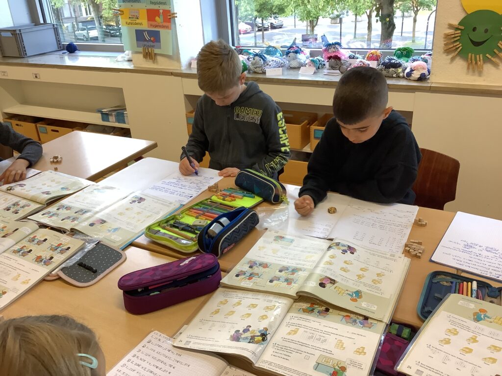 Seit einigen Wochen trainieren wir in unserer Klasse die 1 mal 1 Reihen. Zunächst haben wir die Kernaufgaben gelernt und damit die weiteren 1mal 1 Aufgaben herausgefunden. Inzwischen kennen wir alle Reihen und lernen sie fleißig auswendig. Immer wenn wir etwas Zeit zwischendurch haben, trainieren wir mit einem anderen Kind auf dem Flur, denn wir wollen alle den 1mal 1 Pass bestehen. Sicher werden wir das auch schaffen.