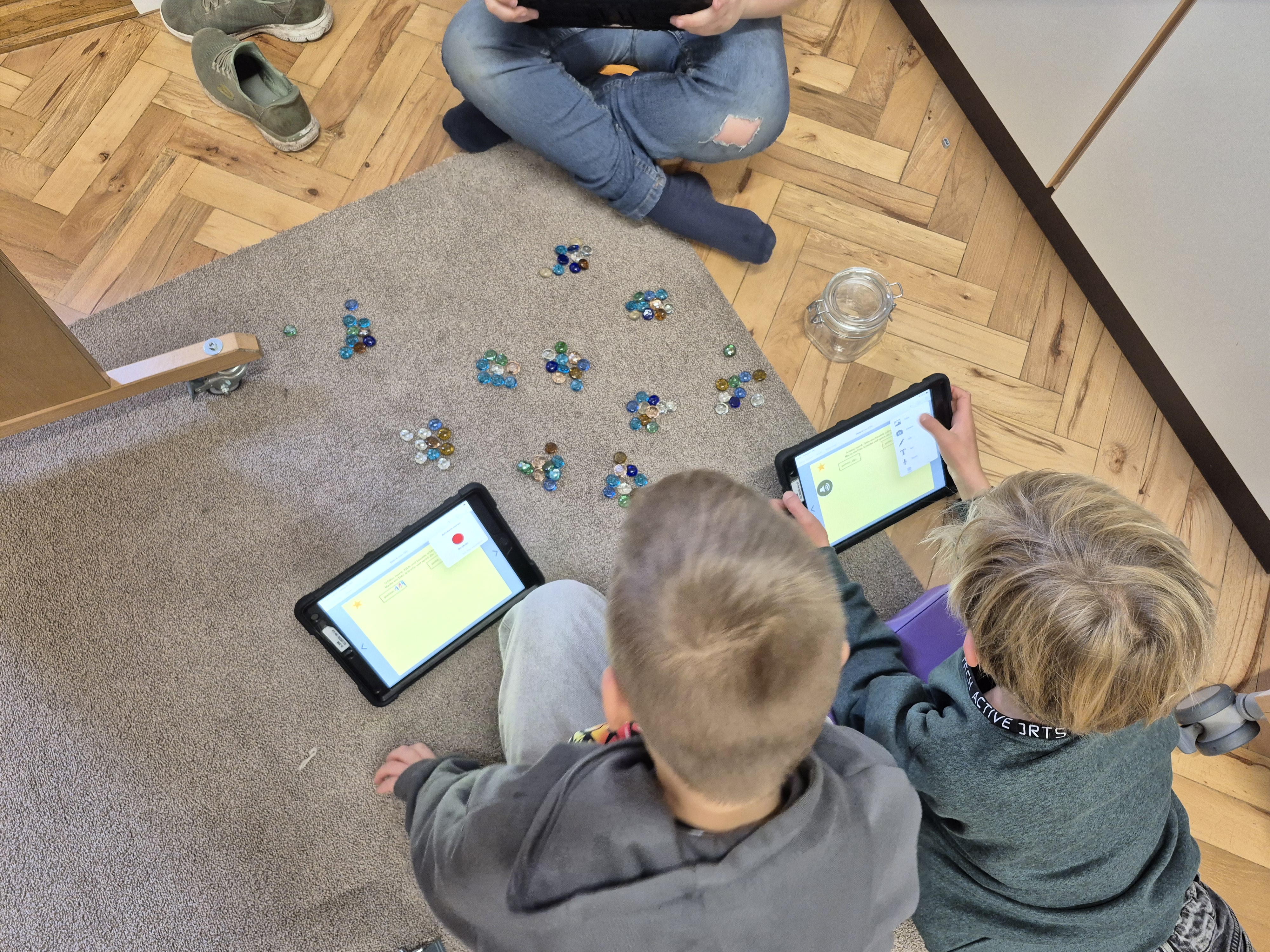 Im Matheunterricht haben wir mit unserem Projekt „Erbsenzähler“ den Zahlenraum bis 1000 erobert. In Gruppen haben wir Erbsen und andere Dinge geschätzt, gebündelt und gezählt. Mit den Tablets haben wir unsere Ergebnisse fotografiert und in einem Buch in der App „Bookcreator“ festgehalten.