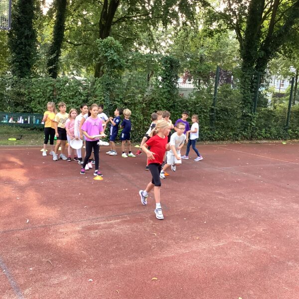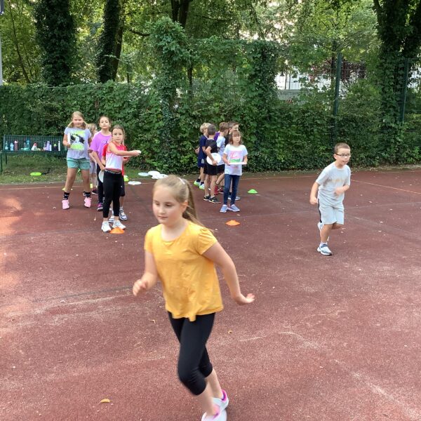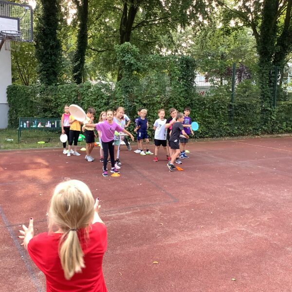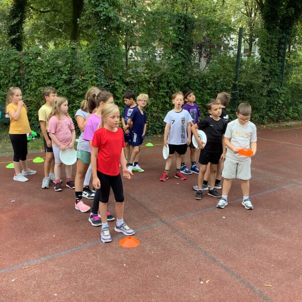 Im Sportunterricht konnten die Kinder der Känguruklasse die Sportart „Ultimate Frisbee“ kennen lernen. Dafür kam extra Oliver, ein Trainer vom TV Verl, zu uns in die Schule. Nachdem er mit uns das Werfen und Fangen der Frisbee-Scheibe geübt hatte, hat er uns die Regeln von „Ultimate-Frisbee“ erklärt. Bei diesem für uns neuen Spiel hatten wir sehr viel Spaß!