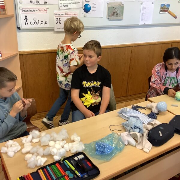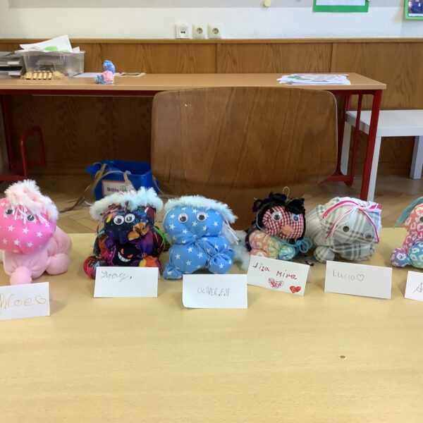 Im Religionsunterricht haben wir das Bilderbuch „Das kleine Ich bin ich“ kennen gelernt und uns auch mit unseren eigenen Talenten beschäftigt. Im Kunstunterricht haben wir dann unsere eigenen Stofftiere genäht. Das war gar nicht so einfach. Aber am Ende hat jedes Kind ein tolles Ergebnis erreicht, das es stolz mit nach Hause nehmen konnte.
