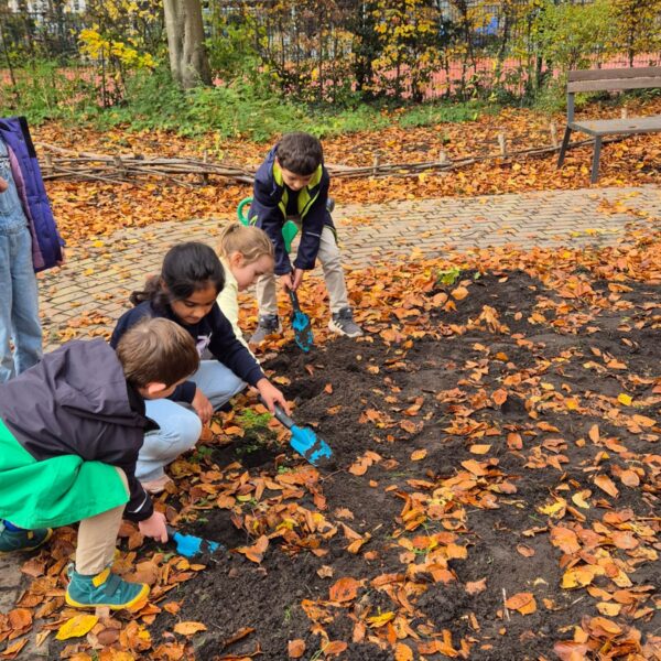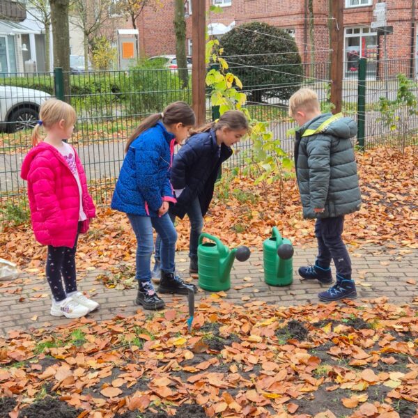 Das hat Spaß gemacht und alle Kinder haben gut mitgeholfen. Nun sind wir gespannt, ob wir im Frühling Tulpen und Narzissen in dem Beet bestaunen können.