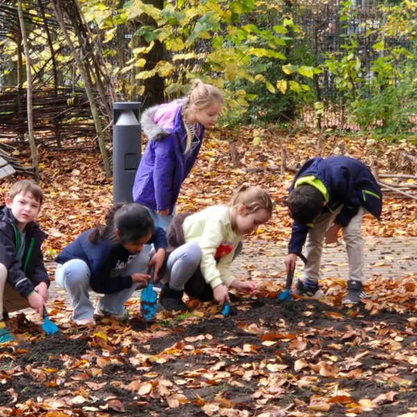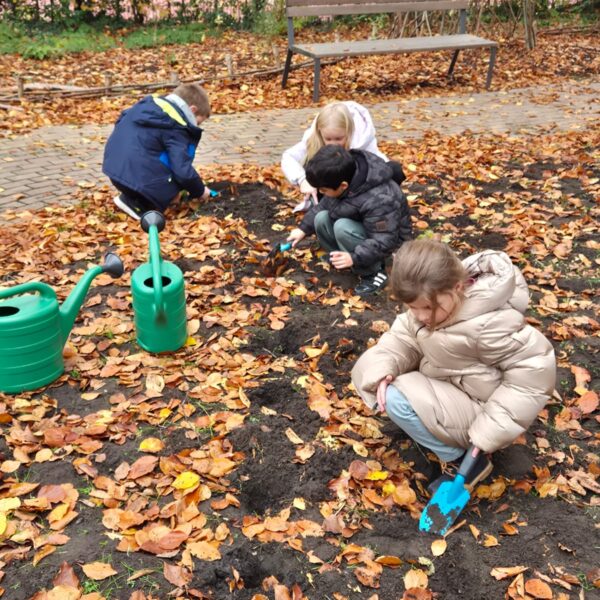 Blumenzwiebeln pflanzen im Schulgarten
