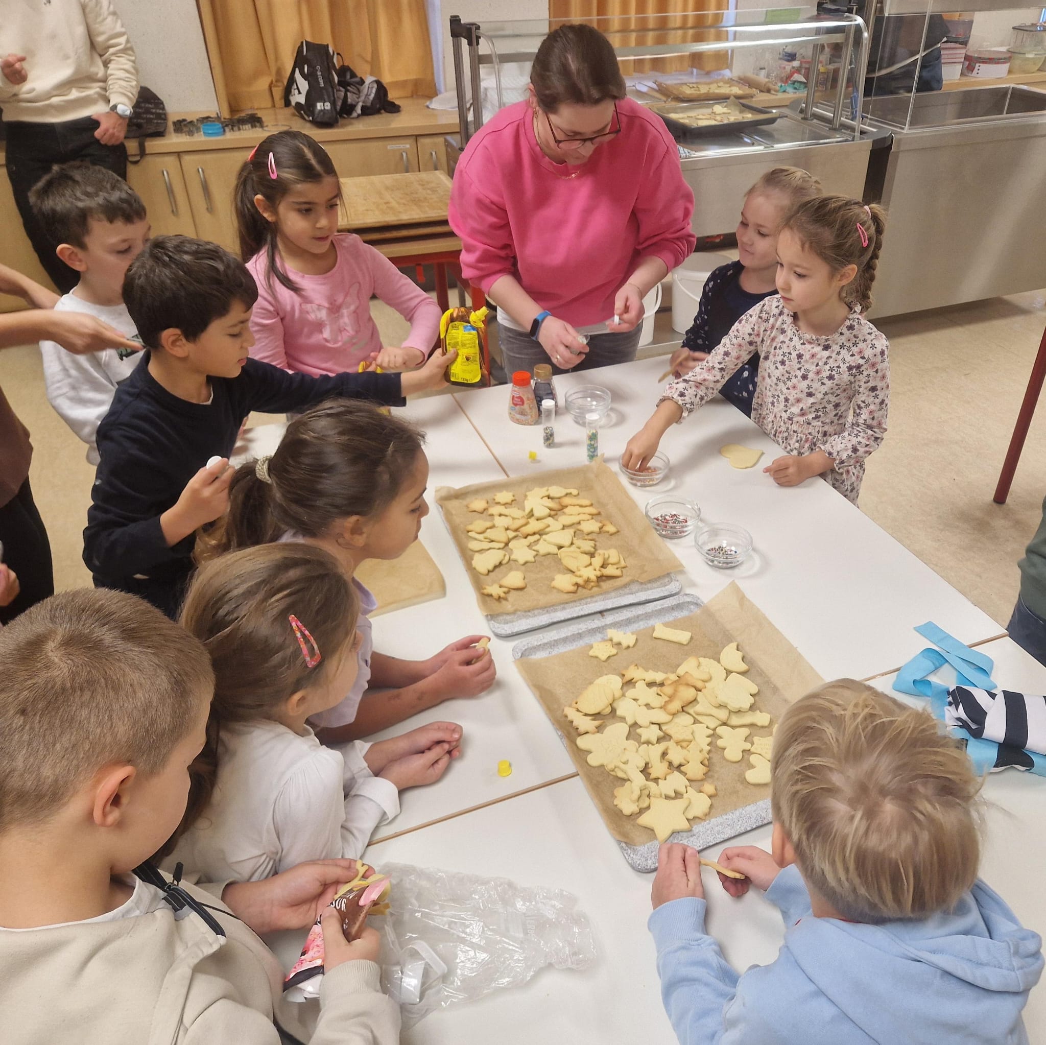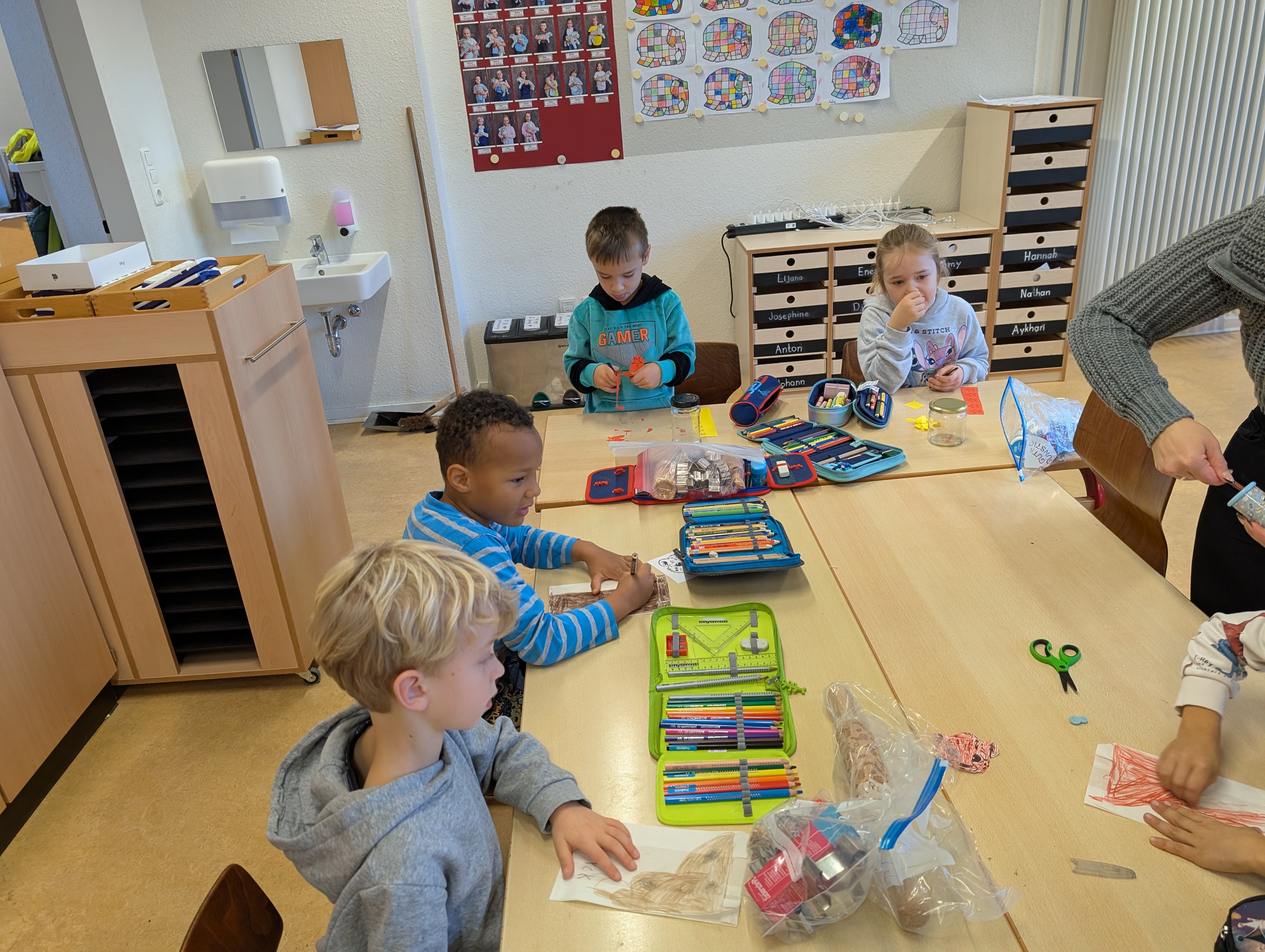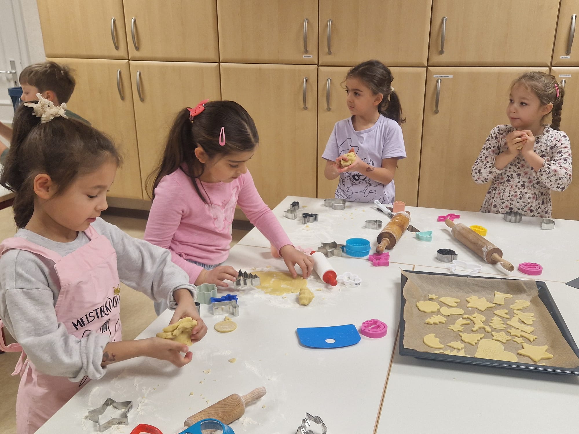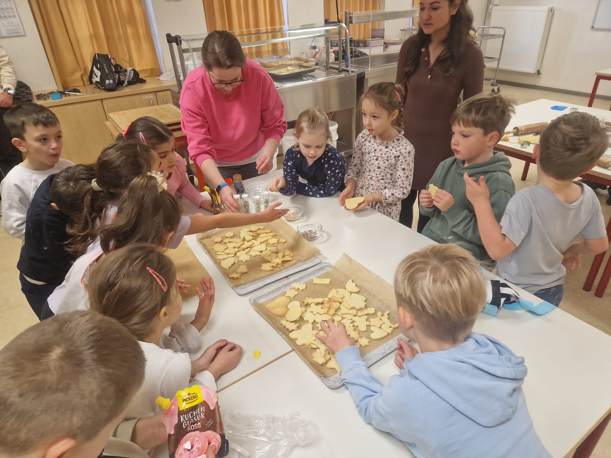 An unserem ersten Back- und Basteltag haben wir eine Tischlaterne und einen Geparden-Adventskalender gebastelt. In der Küche haben wir außerdem Plätzchen gebacken. Natürlich haben wir dabei auch genascht. Wir freuen uns schon, wenn die Adventszeit beginnt.