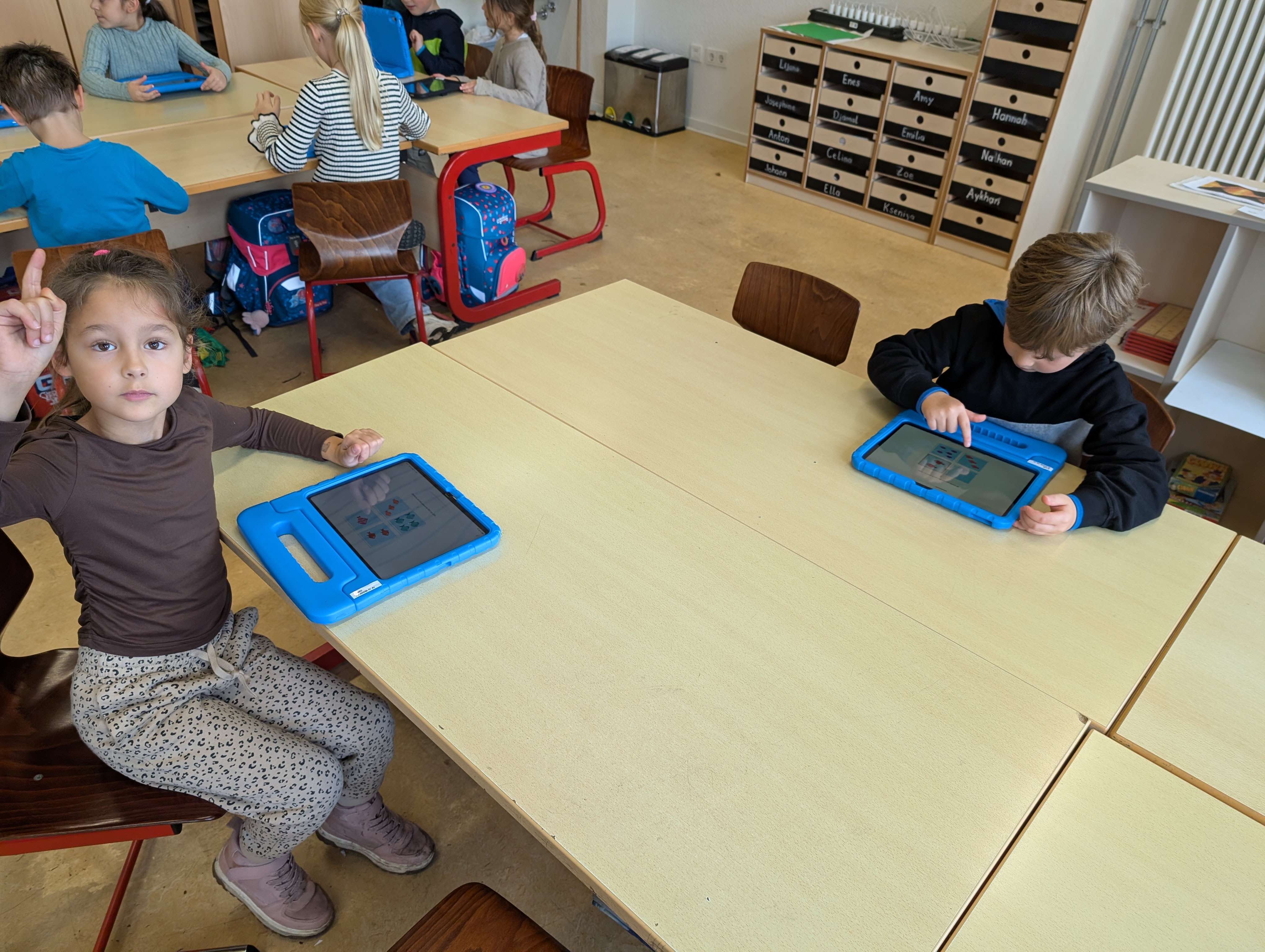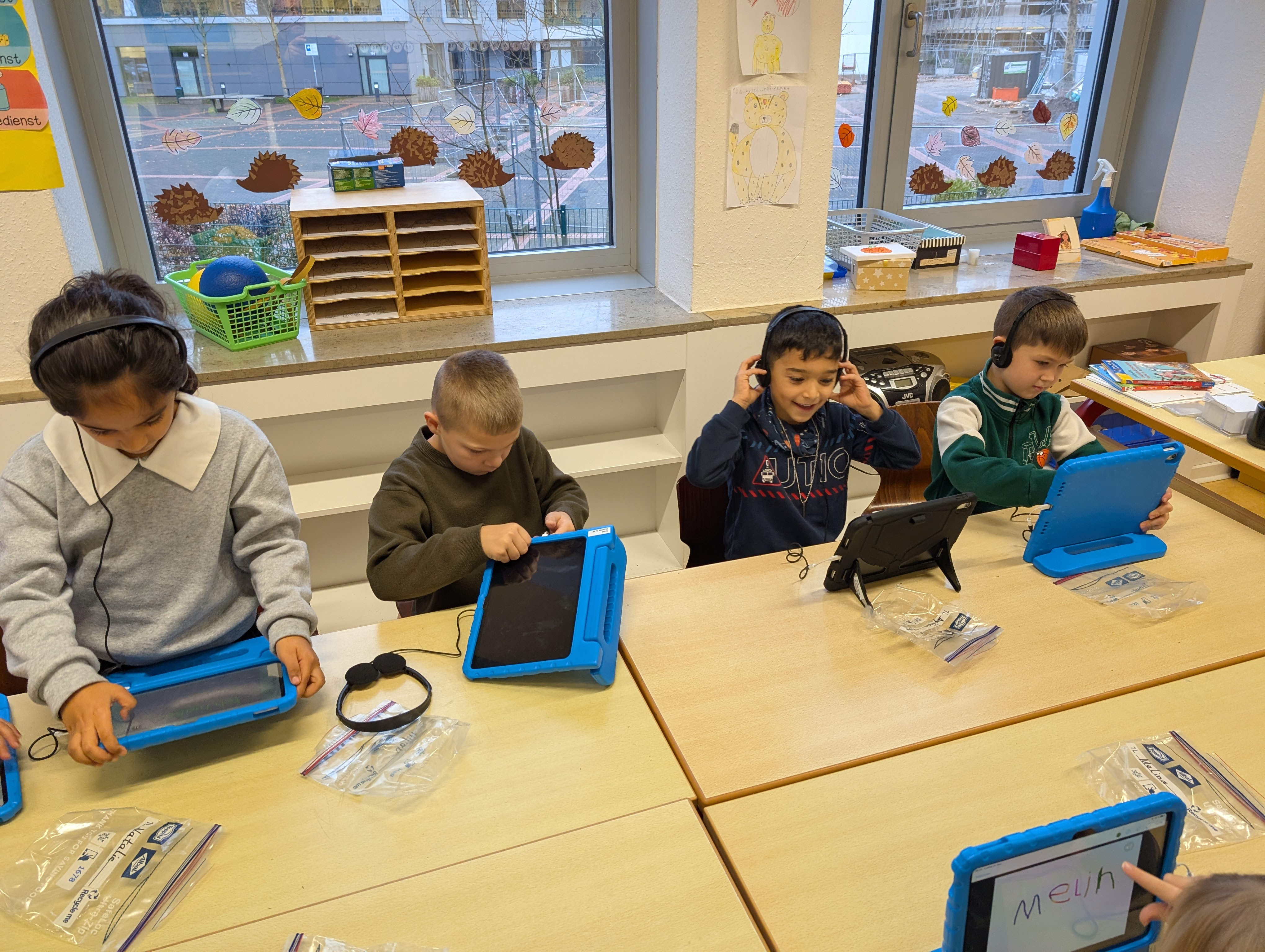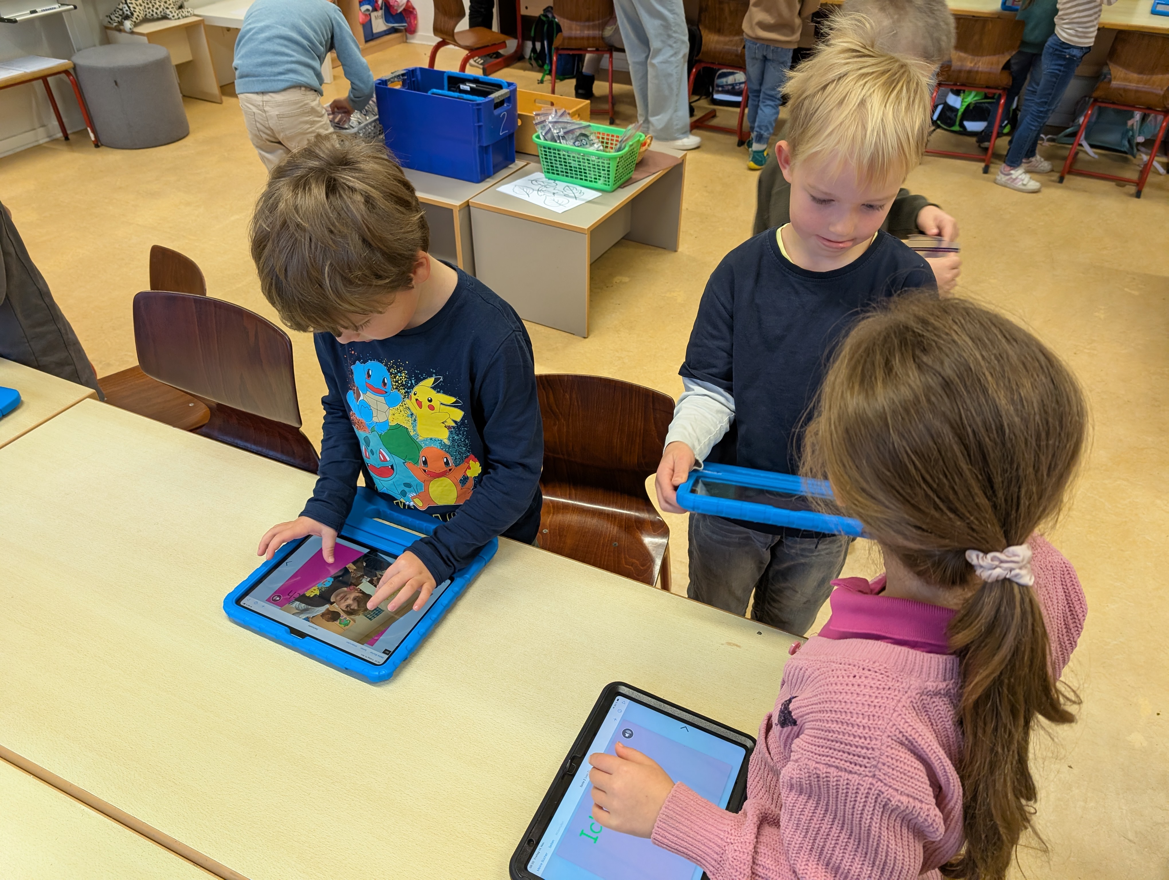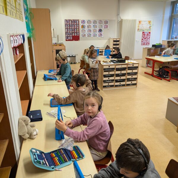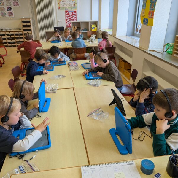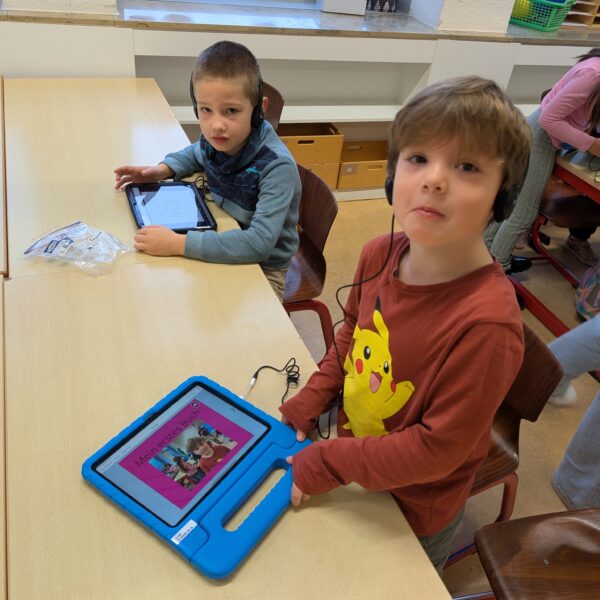 Wir hatten unseren ersten Medientag. Dort haben wir die App Bookcreator kennengelernt. Wir haben gelernt, wie man unterschiedliche Stiftarten und Farben auswählen kann. Außerdem können wir jetzt auch Fotos selber einfügen. Es hat uns riesigen Spaß gemacht, an unserem ersten Buch zu arbeiten.