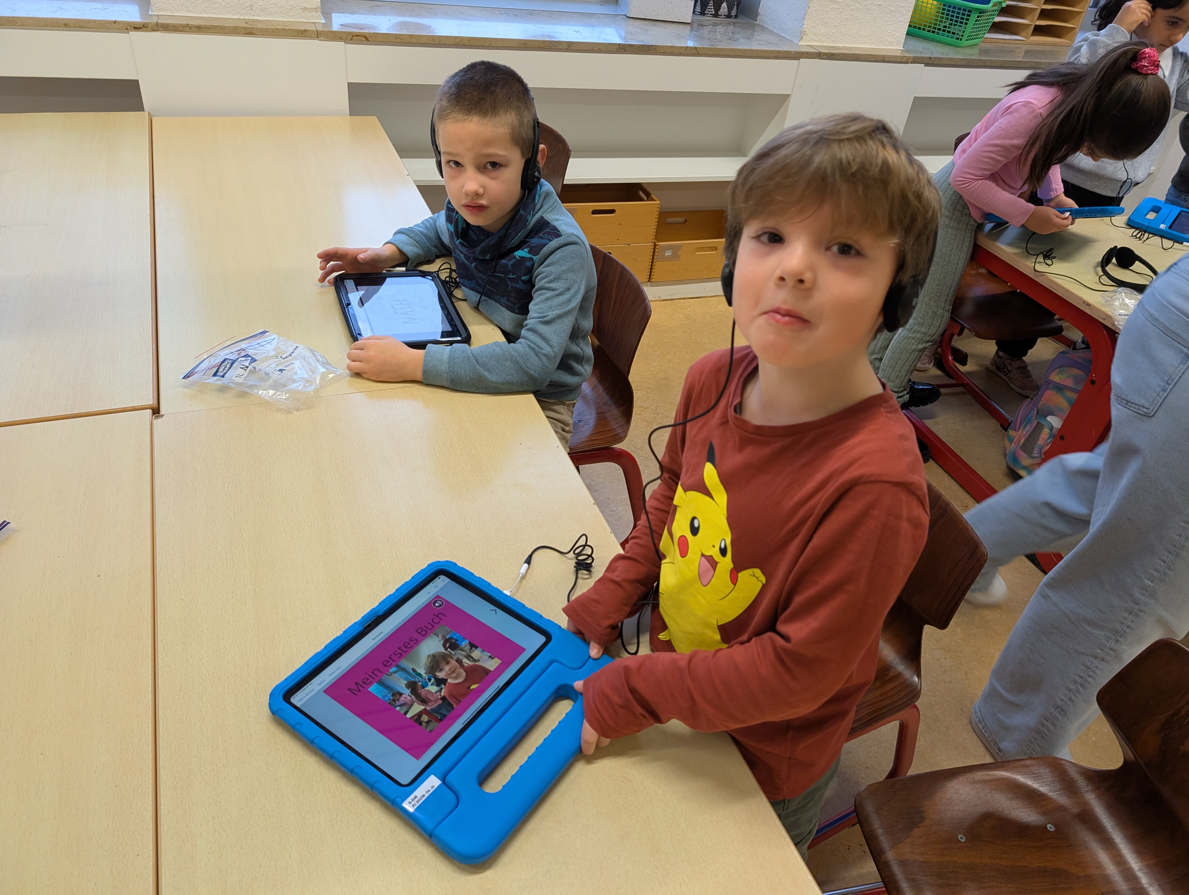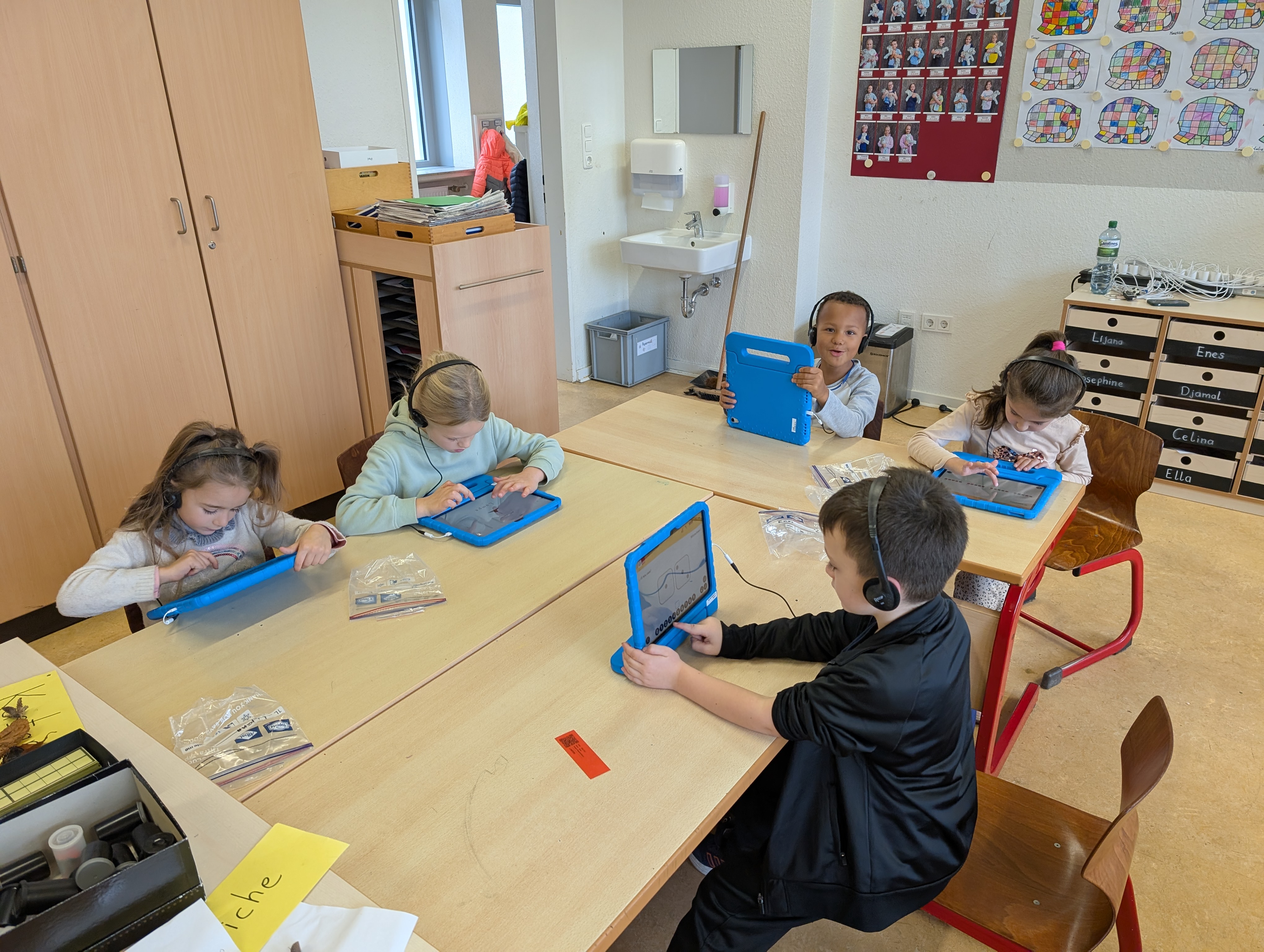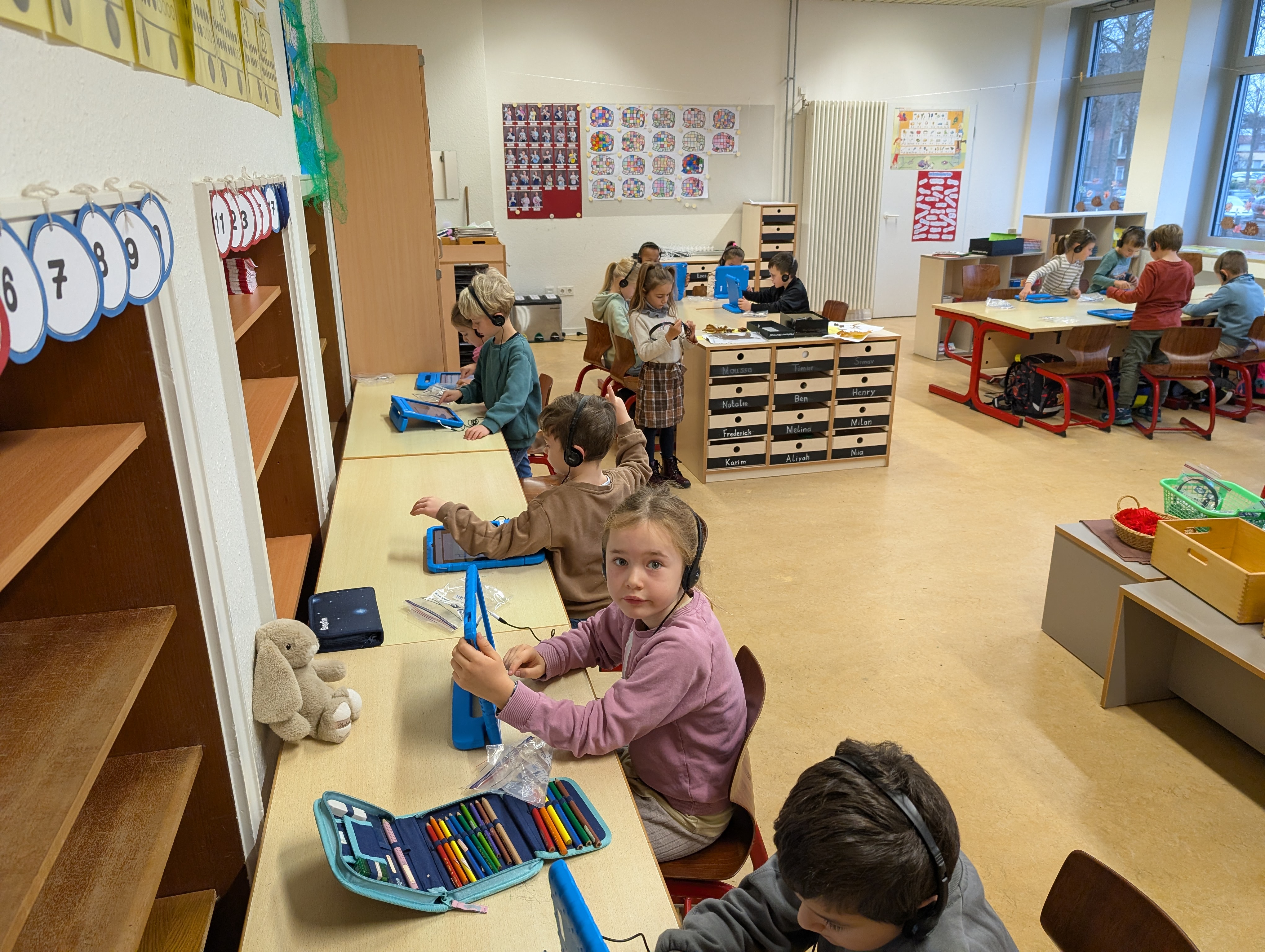 Wir hatten unseren ersten Medientag. Dort haben wir die App Bookcreator kennengelernt. Wir haben gelernt, wie man unterschiedliche Stiftarten und Farben auswählen kann. Außerdem können wir jetzt auch Fotos selber einfügen. Es hat uns riesigen Spaß gemacht, an unserem ersten Buch zu arbeiten.