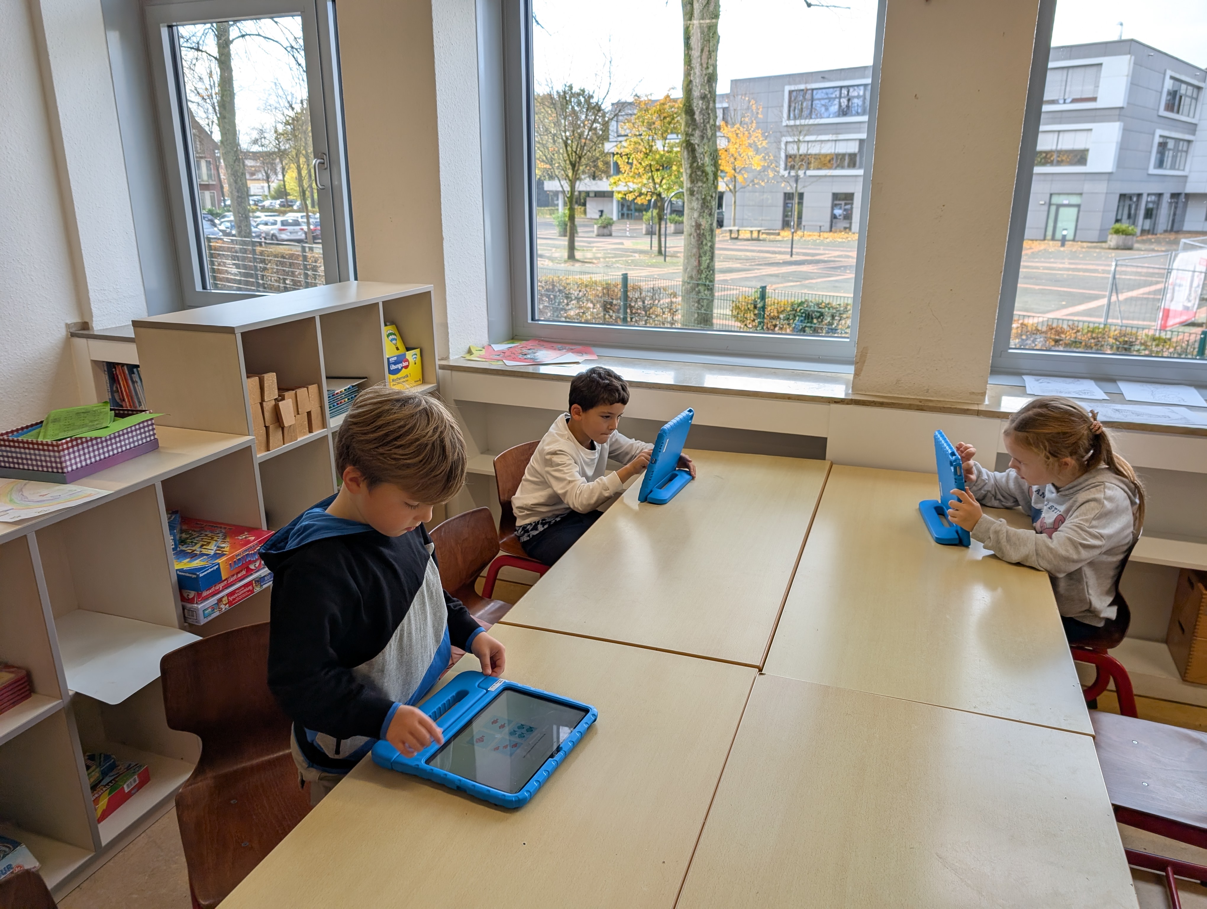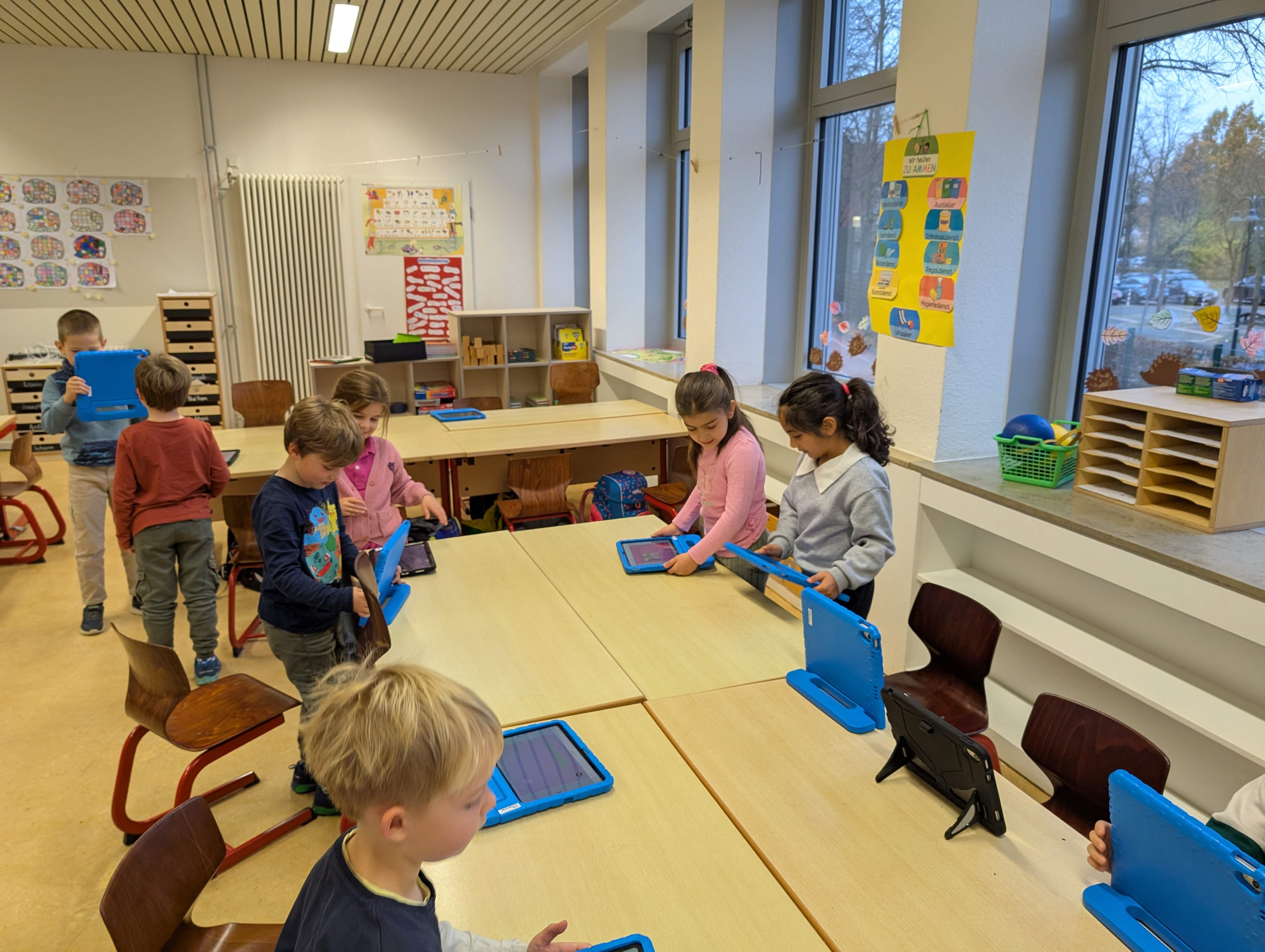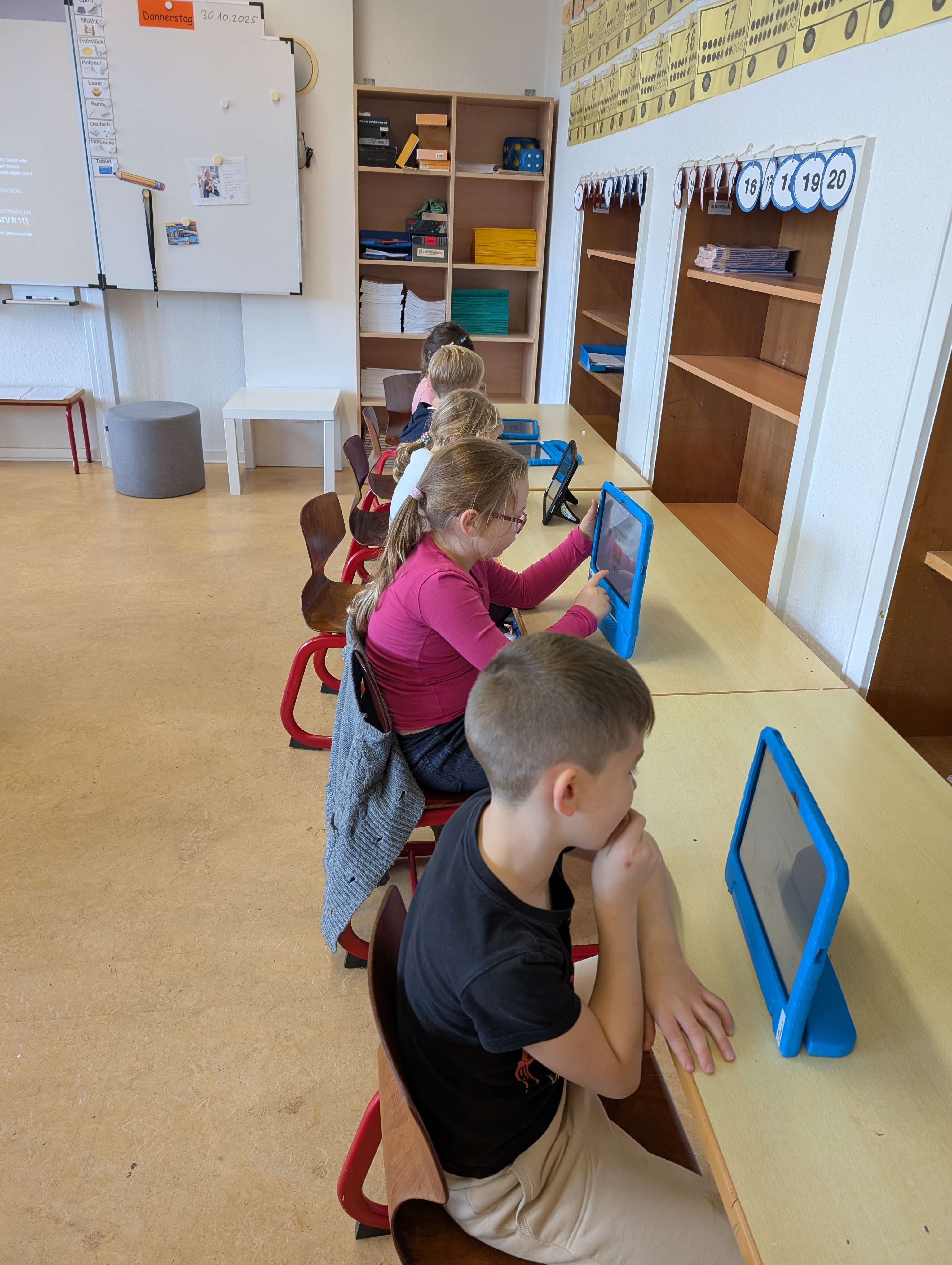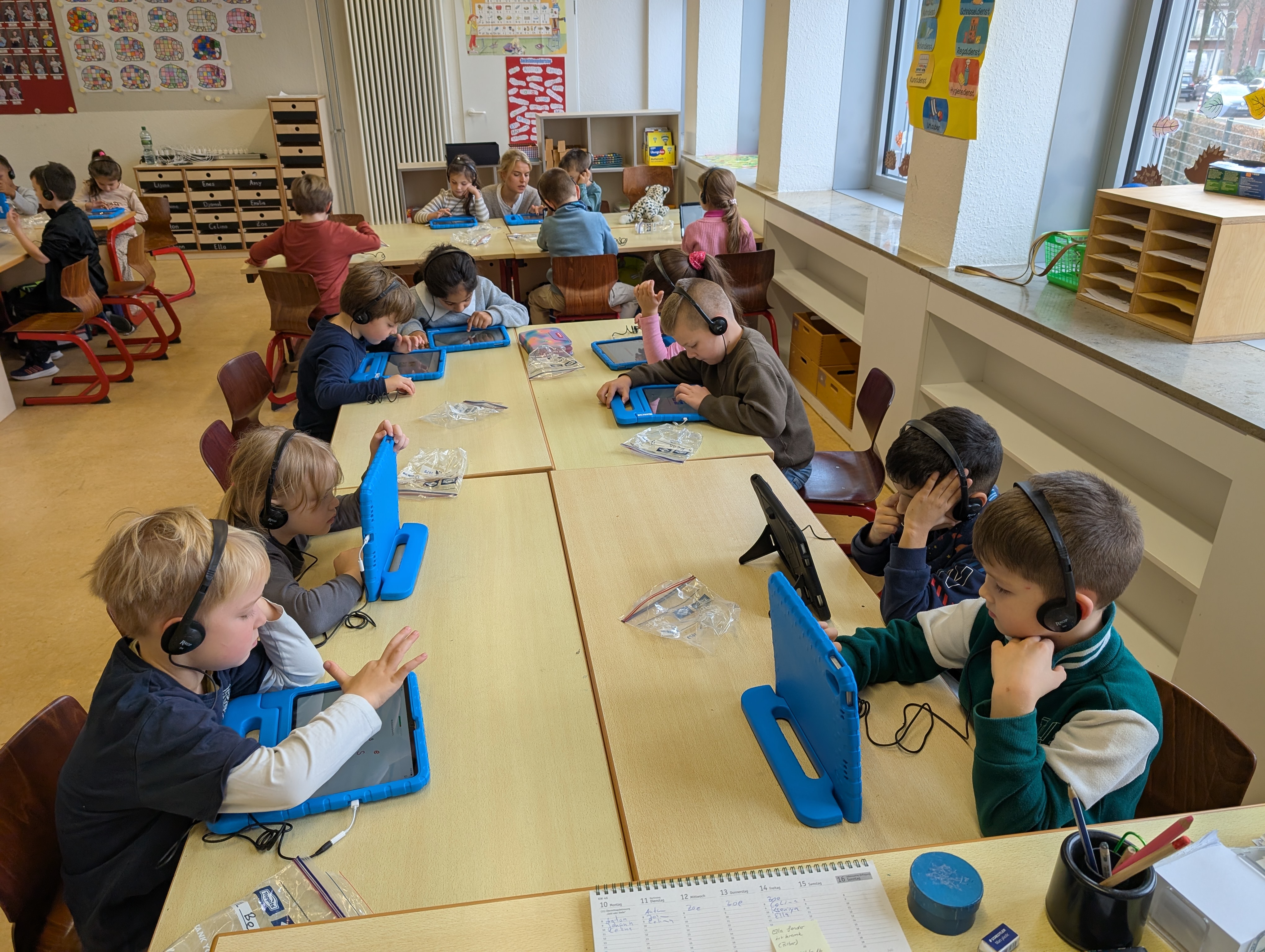 Wir hatten unseren ersten Medientag. Dort haben wir die App Bookcreator kennengelernt. Wir haben gelernt, wie man unterschiedliche Stiftarten und Farben auswählen kann. Außerdem können wir jetzt auch Fotos selber einfügen. Es hat uns riesigen Spaß gemacht, an unserem ersten Buch zu arbeiten.