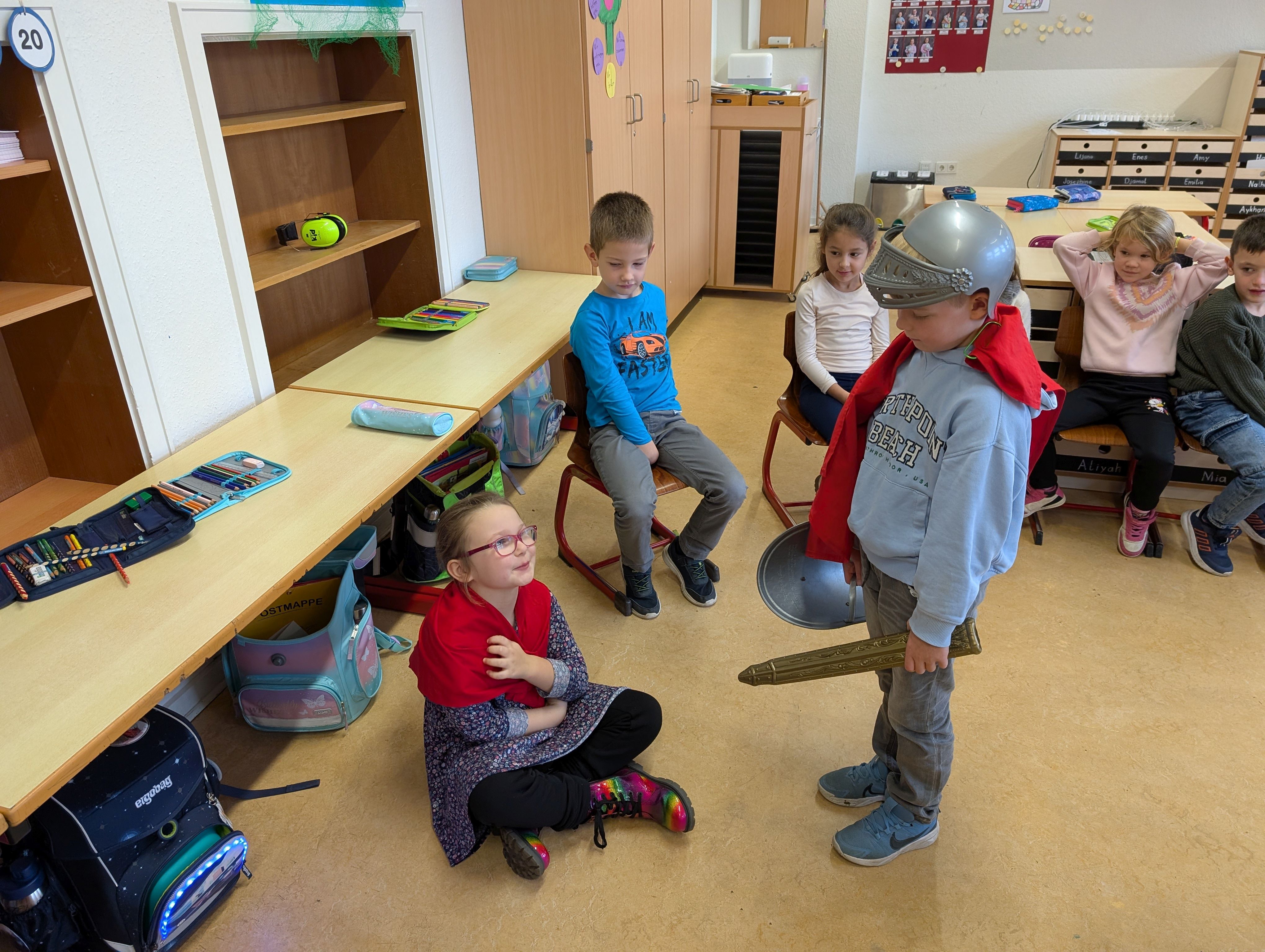 In Religion haben wir die Geschichte von Sankt Martin gehört. Anschließend haben wir sie nachgespielt.