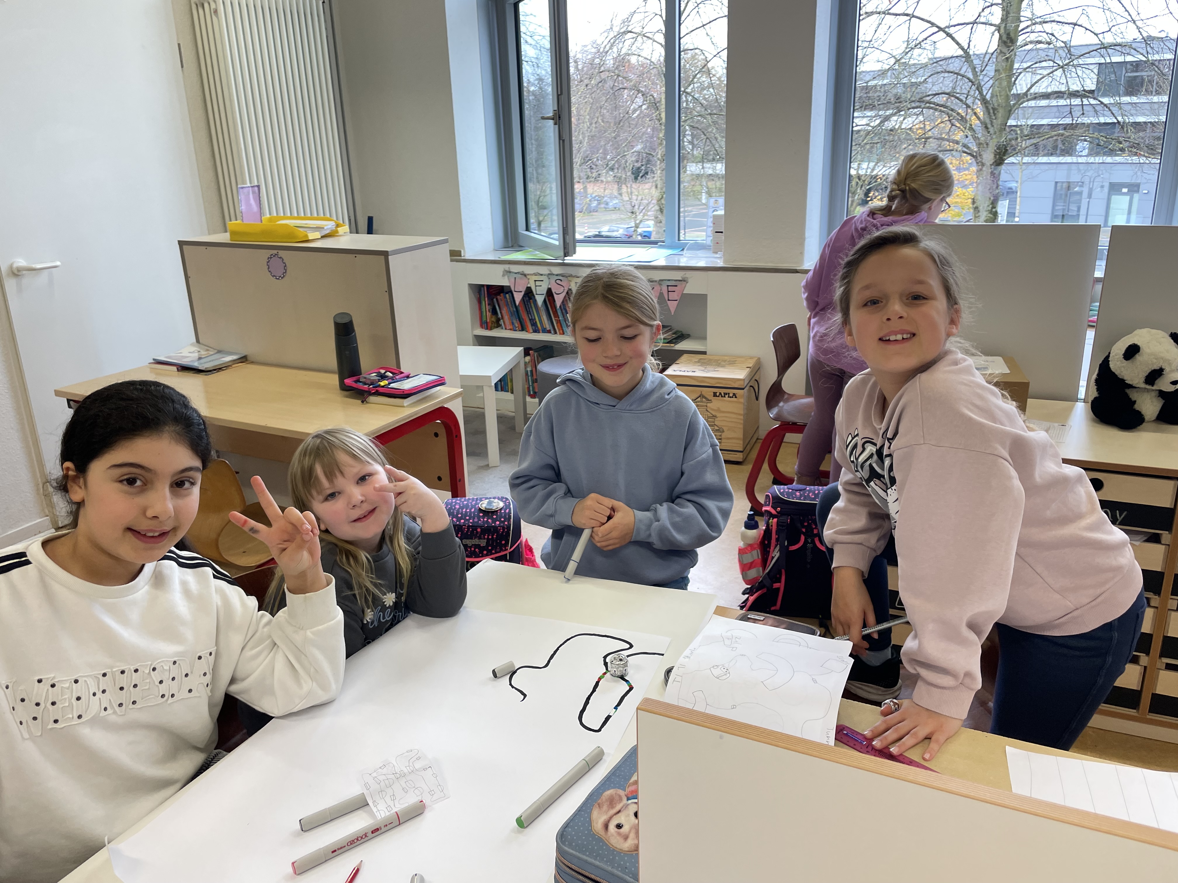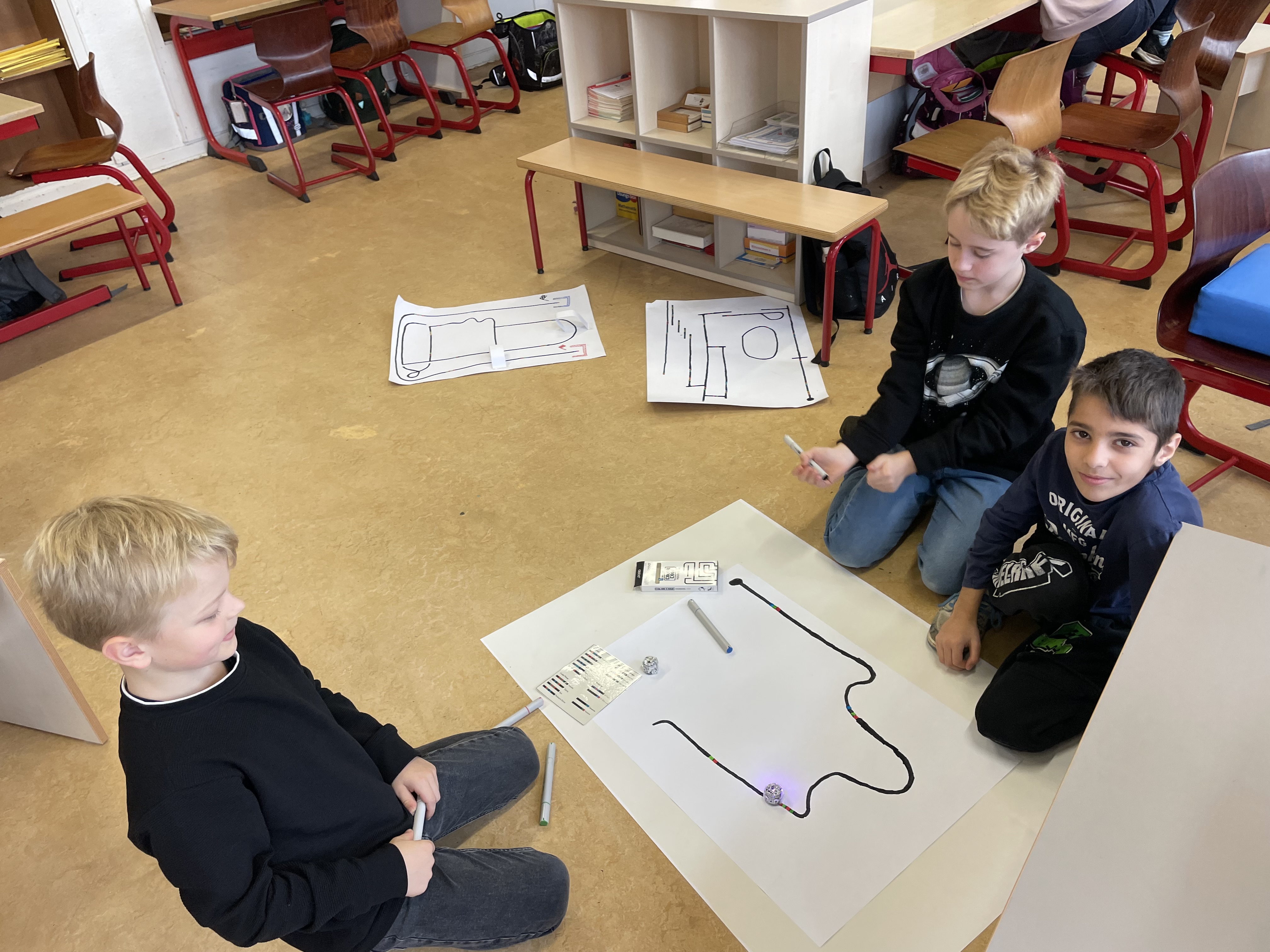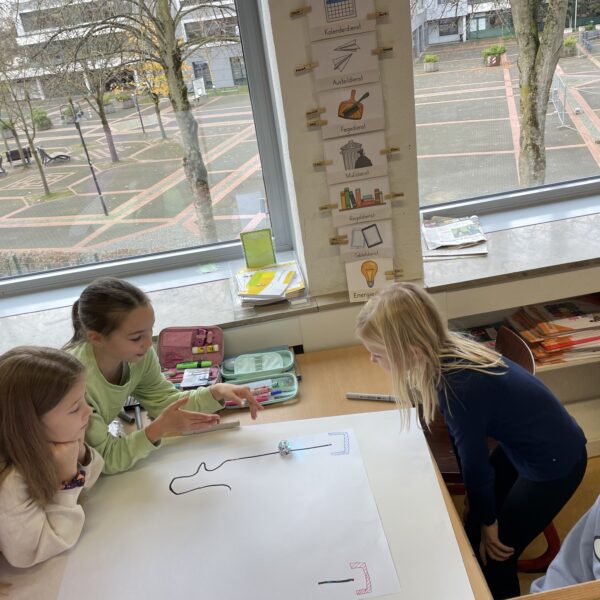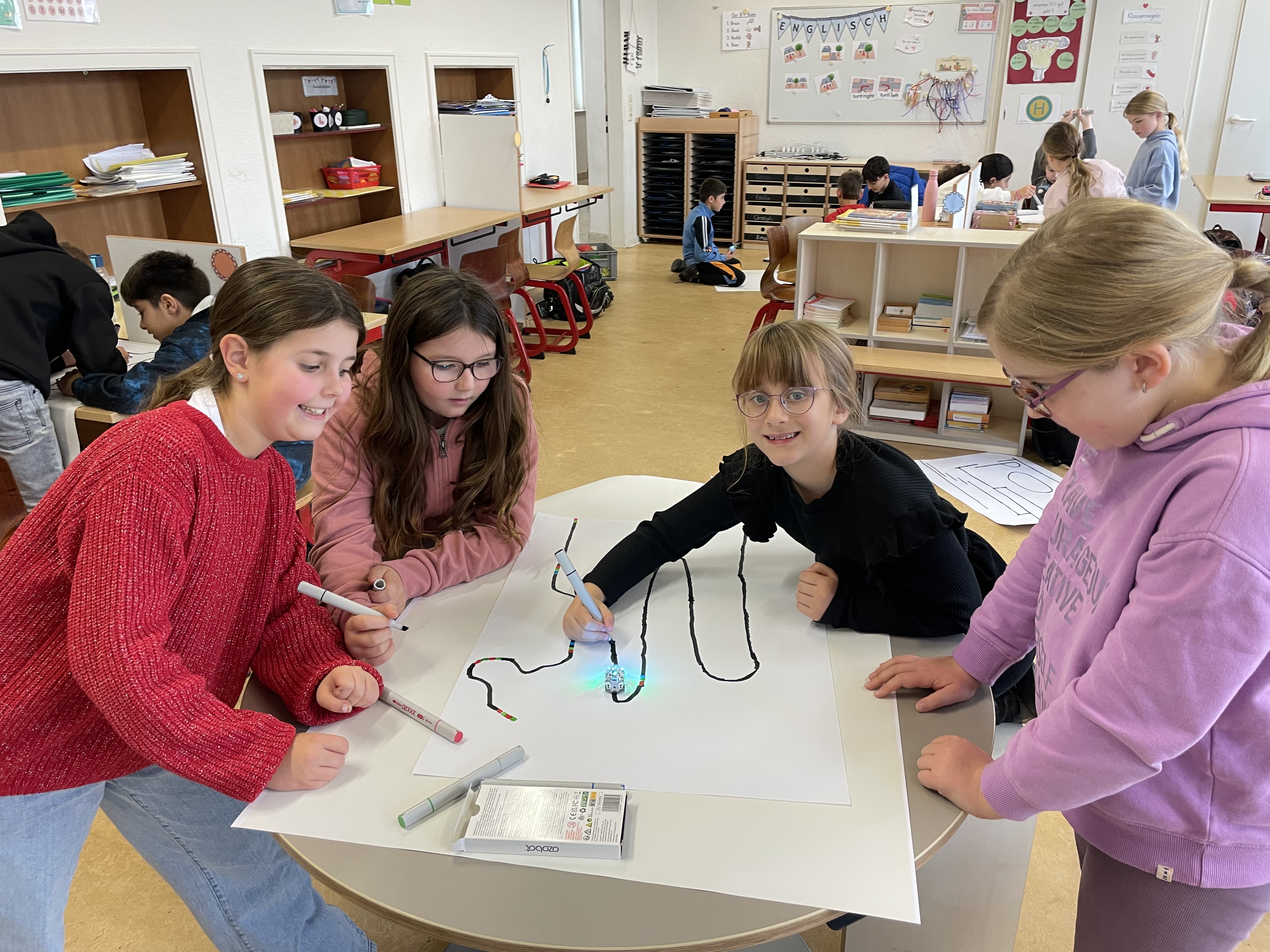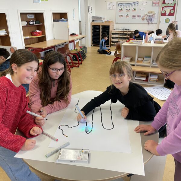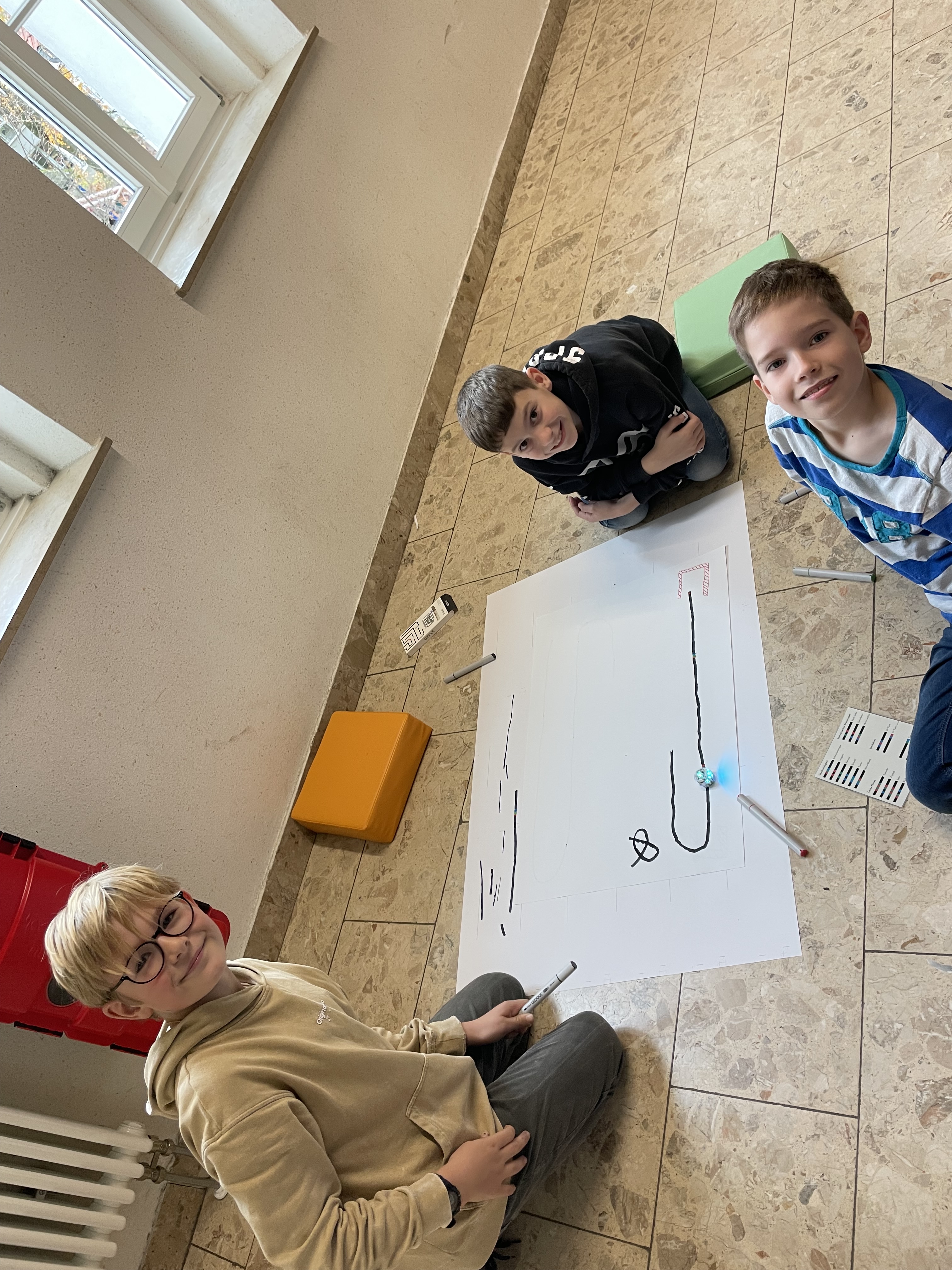 An unserem Medientag haben wir mit Ozobots – kleinen programmierbaren Robotern – experimentiert.