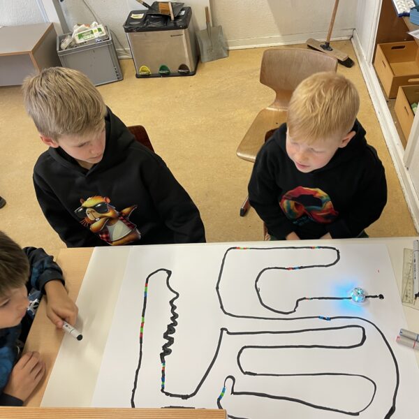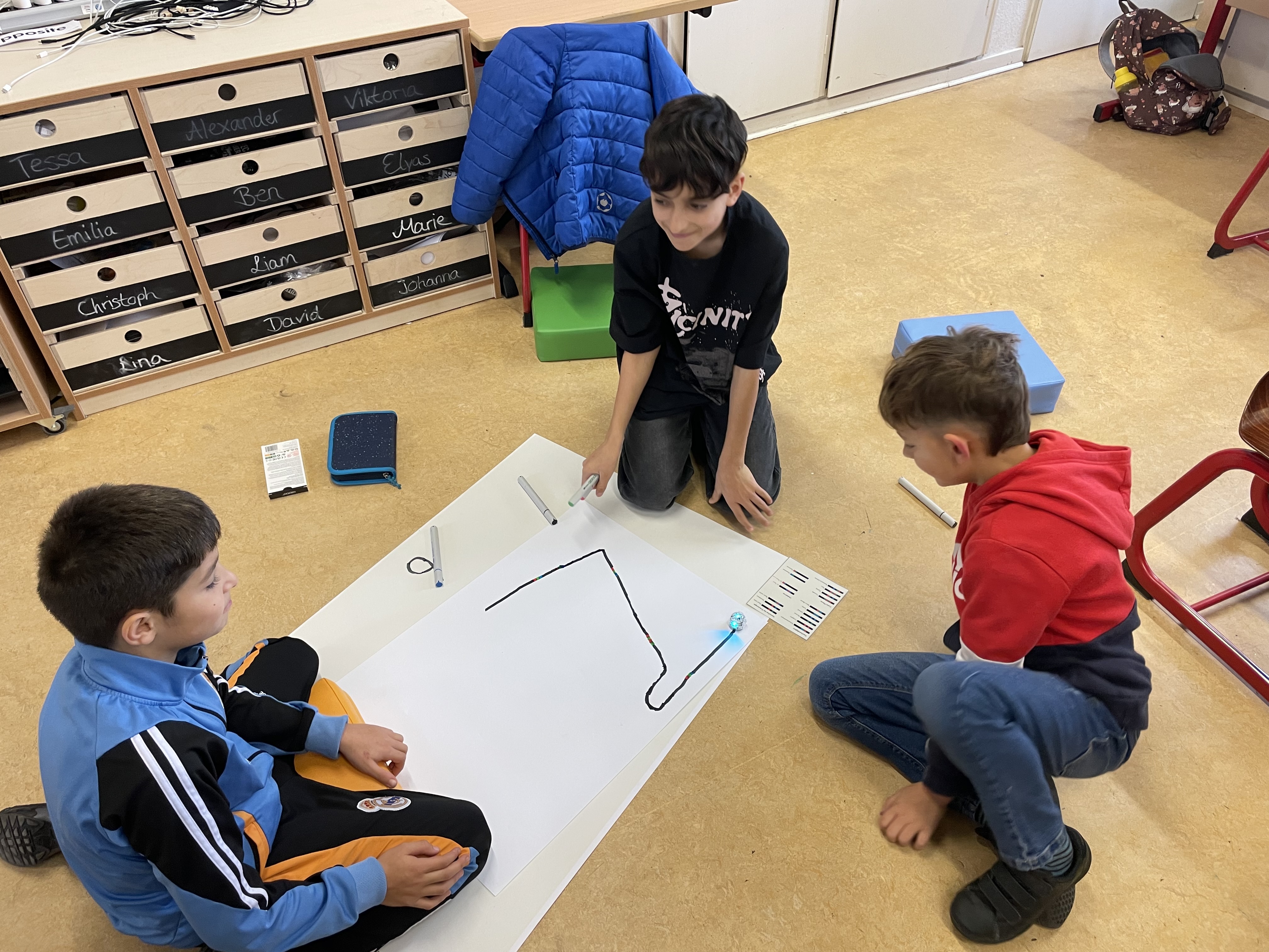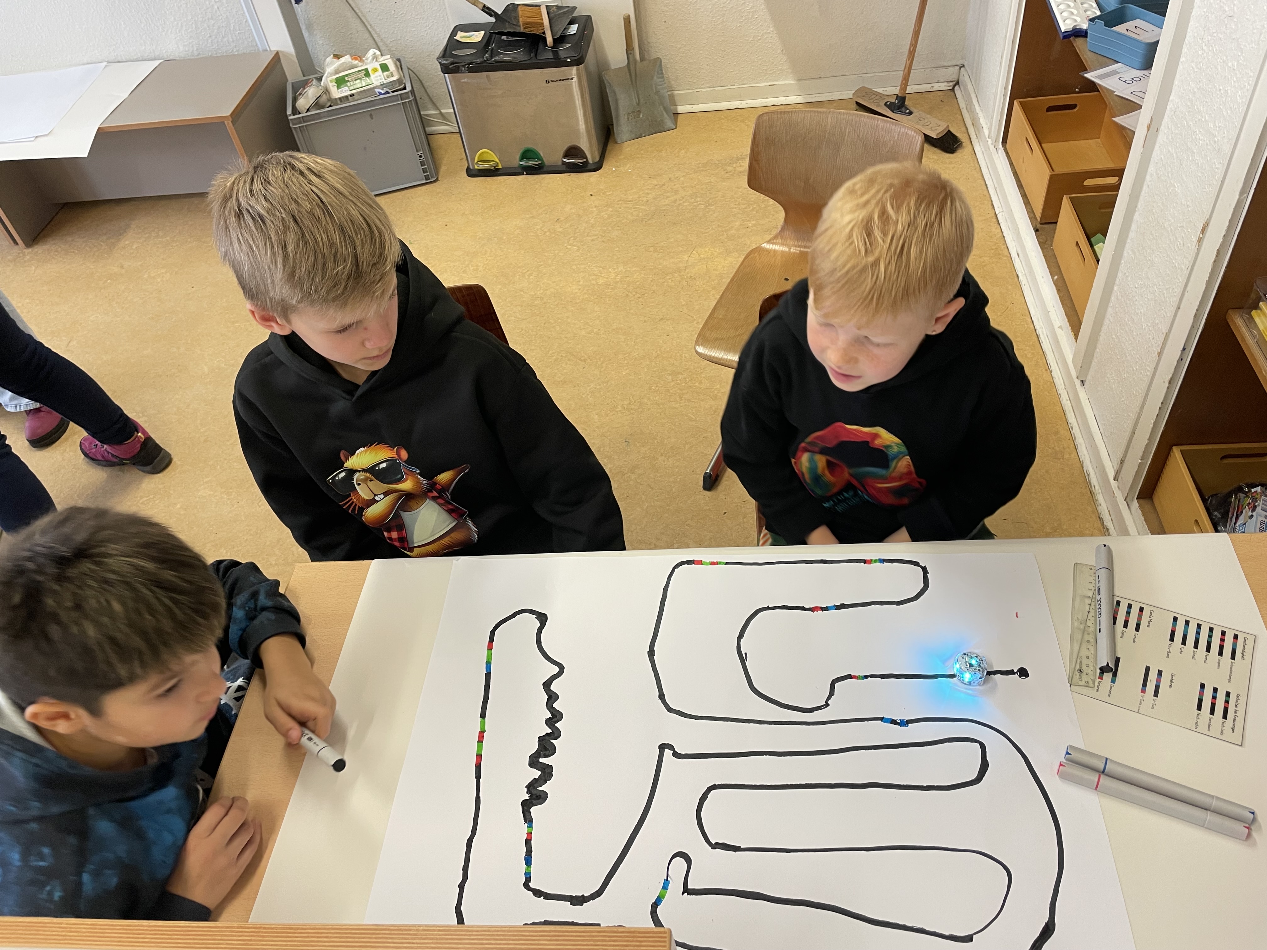 Wir zeichneten einen eigenen Parcours und steuerten die Roboter mit bunten Farbcodes.